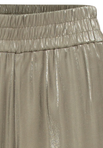Брюки из вискозной ткани создают ощущение воздушности на коже. Удобство благодаря широкому эластичному поясу и двум прорезным карманам.