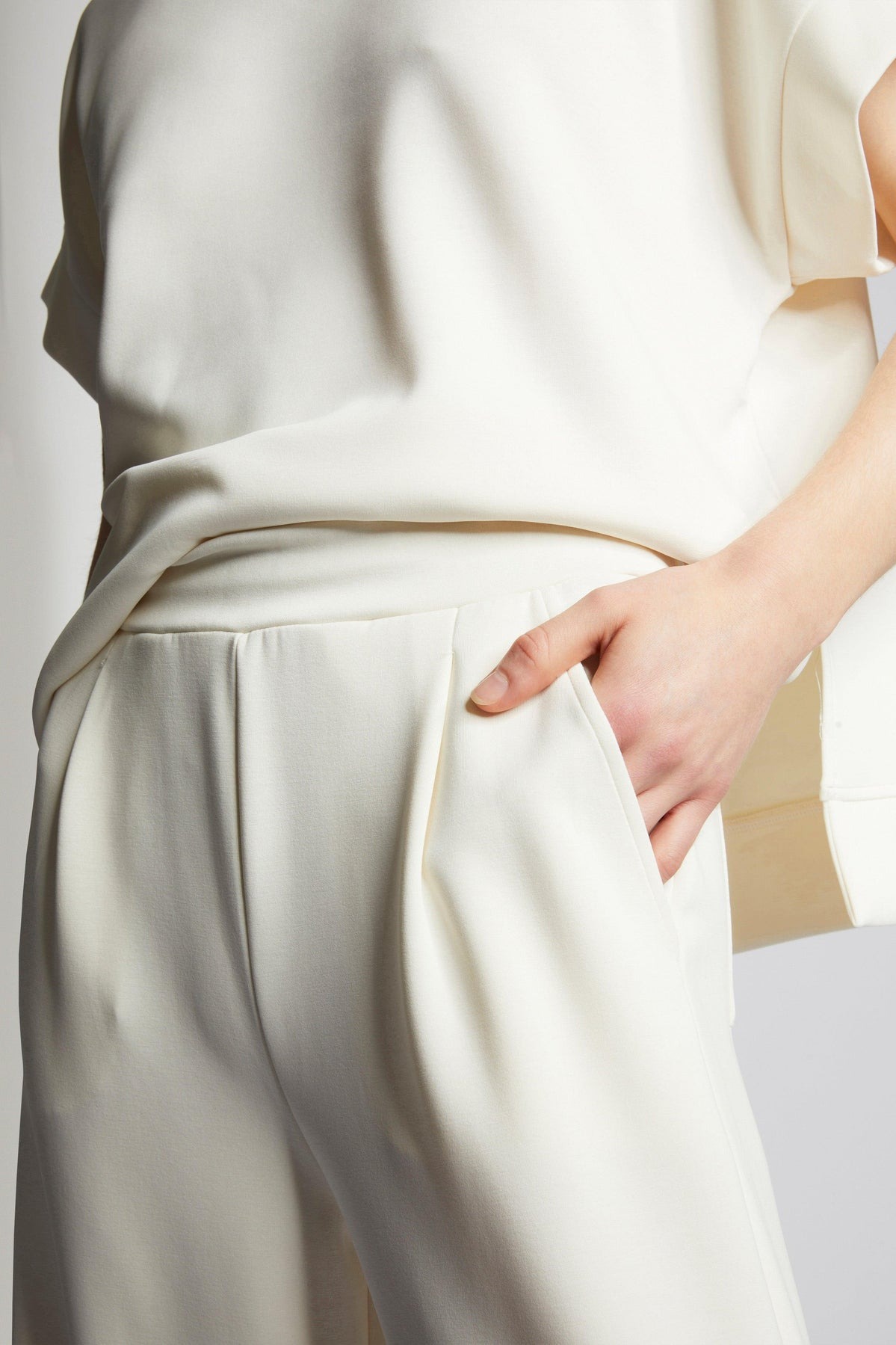 Эти брюки-кюлоты благодаря приятному мягкому материалу выглядят убедительно непринужденно. Эластичный пояс обеспечивает комфорт. Два боковых кармана и накладные карманы сзади подчеркивают свободный крой. Пришитая тесьма по краю красиво привлекает внимание.