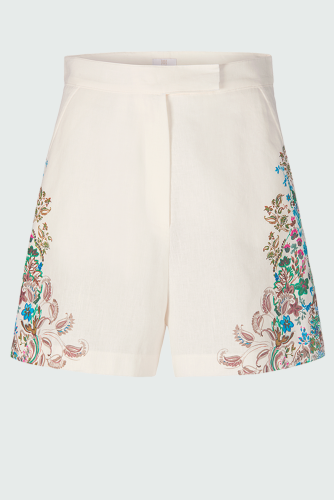 С красивым прованским принтом, искусно размещенным по бокам модных шорт, создается ощущение лета. Высококачественная хлопково-льняная ткань обладает естественным очарованием, а тщательно скрытая застежка придает шортам нотку элегантности. Великолепная ключевая деталь, которая привнесет женственный шик в любой гардероб.