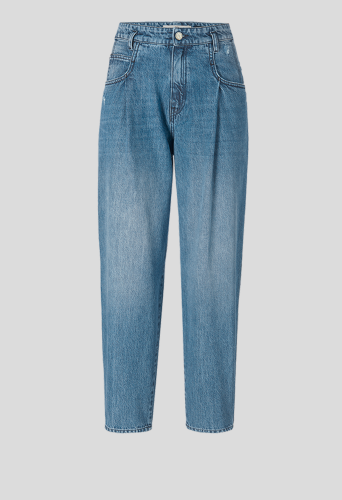 Широкие вверху, узкие внизу: морковные брюки возвращаются в моду. Эти джинсы из повседневного аутентичного денима, не содержащего эластана, прекрасно выглядят в стиле ретро.