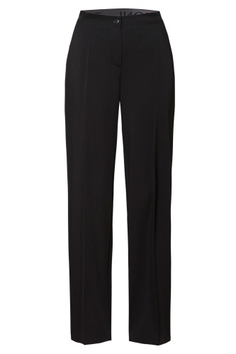 Деловые брюки с широкими штанинами, резинкой, заутюженными складками и из немнущегося материала.