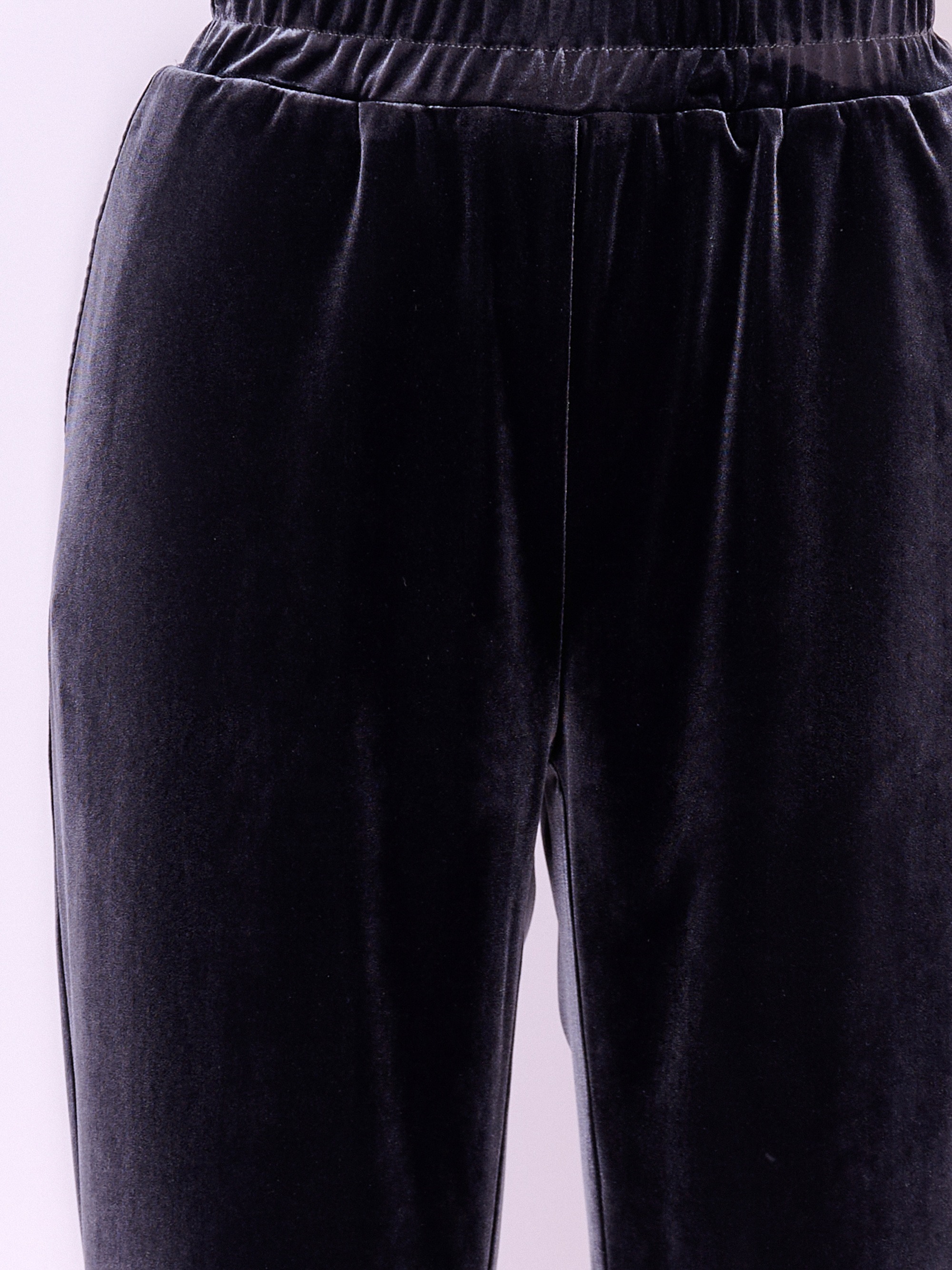 Трикотажные зауженные бархатные брюки на резинке с косыми карманами и отворотами по низу брючин. Длина брючин: 74 см.