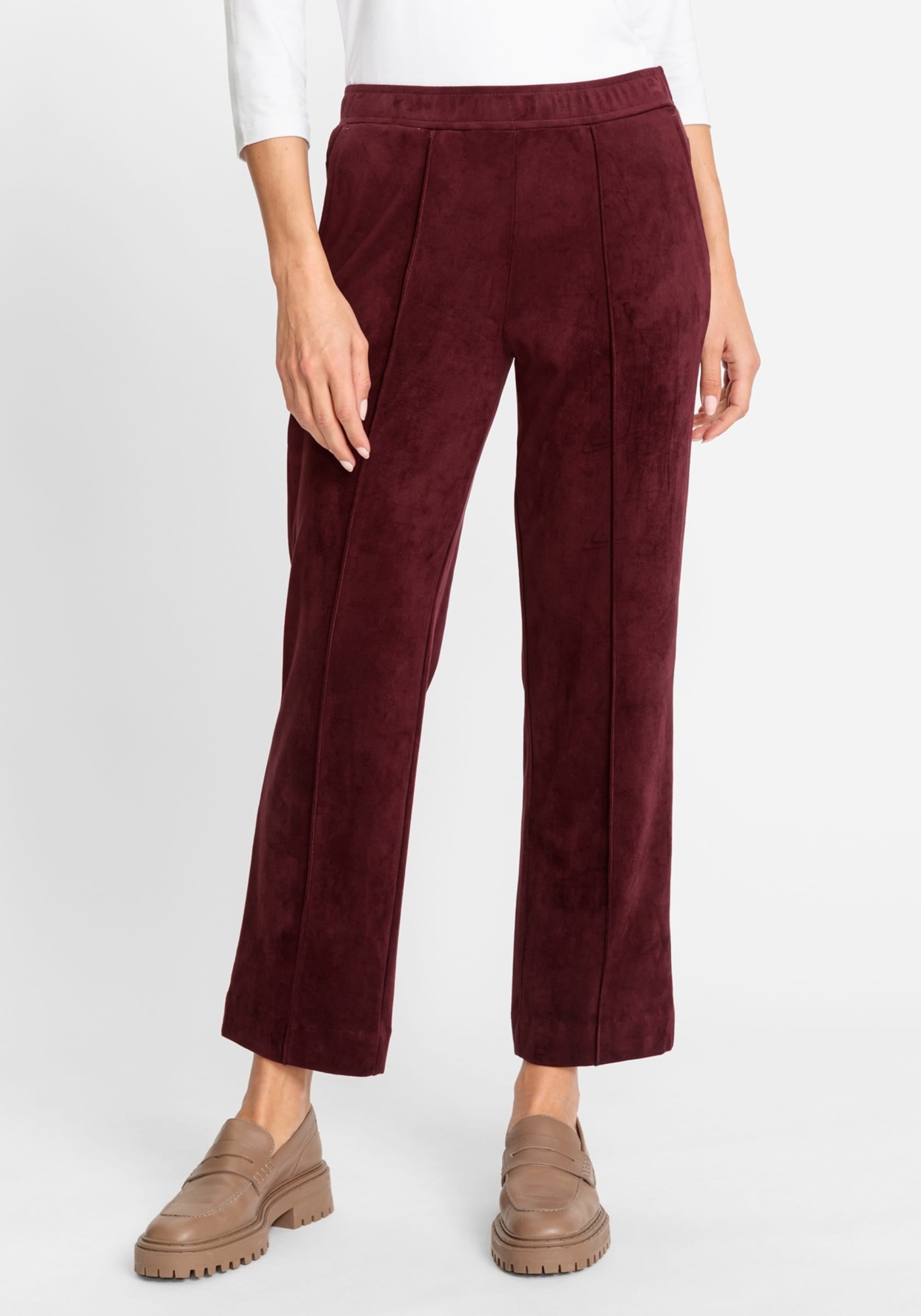 Мягкая искусственная замша очень удобна благодаря своей эластичной ткани и создает ощущение богатства и роскоши. Плоский передний эластичный пояс на застежке с прорезными карманами и центральными швами передних штанин для элегантного внешнего вида. Они расслаблены в бедрах и сидят прямо на естественной линии талии, создавая эффект удлинения ног.