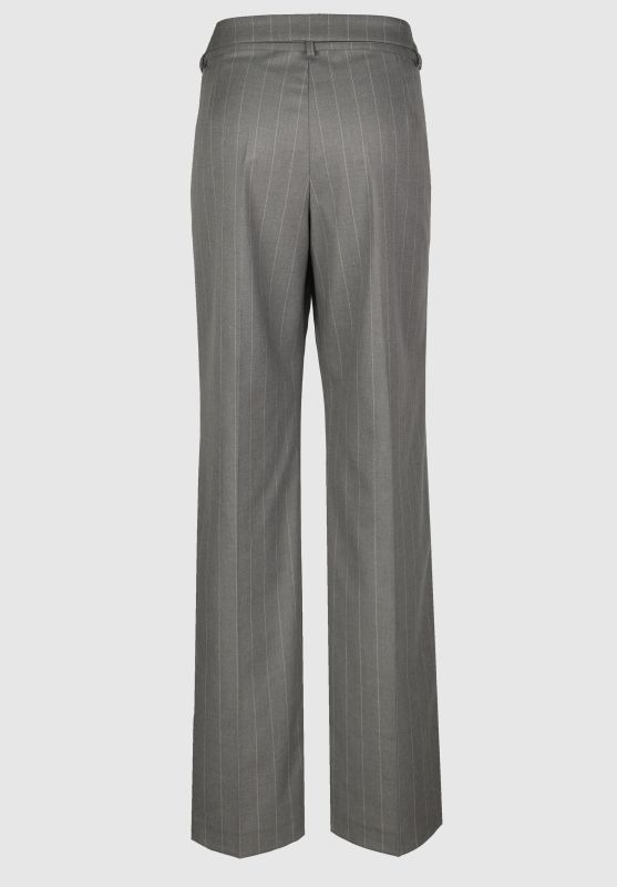 Брюки стрейч с небольшим тканевым поясом. Высококачественная смесь материалов с эластаном. С фигурным поясом и застежкой на крючок и пуговицу. Прямой, длинный крой с запрессованными складками. Длина около 82 см, ширина по низу около 50 см.