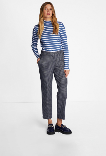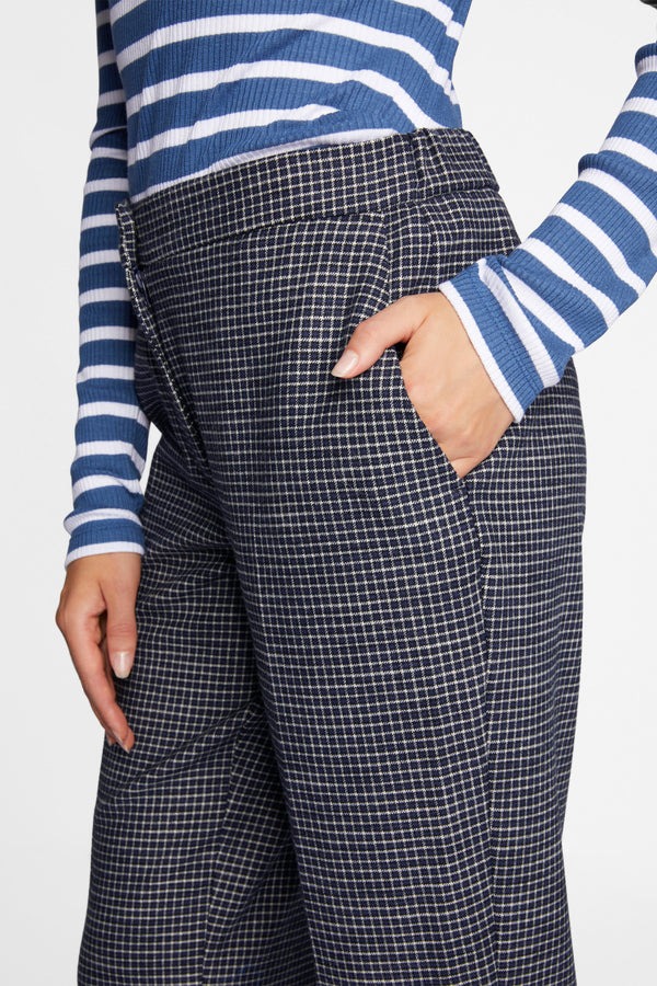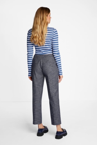 Брюки из вискозы классического кроя с клетчатым узором. Молния, крючки и эластичная вставка на поясе сзади. Длина для размера 42: 70 см.