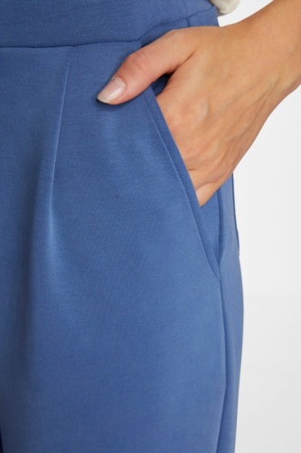 Характерной особенностью этих брюк является приятная широкая штанина свободного кроя. Эластичный пояс, боковые карманы и эластан подчеркивают комфорт при ношении. Длина для размера 42: 80 см.