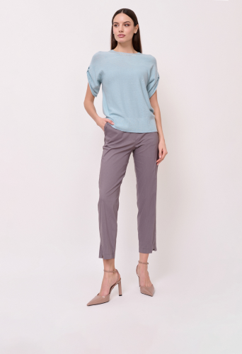 Детали: эластичный текстиль, пояс на резинке, рисунок полоска, карманы косые, крой брючин зауженный, посадка средняя. Длина брючин: 70 см.