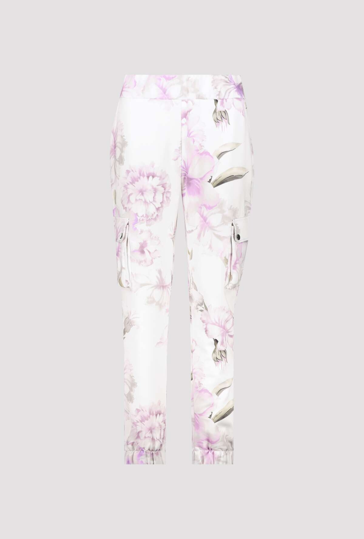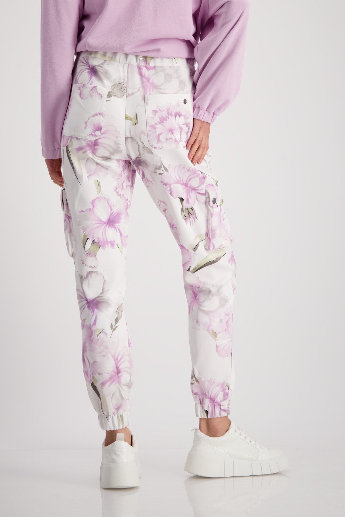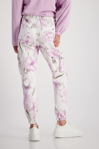 Спортивные брюки с цветочным узором очень мягкие на ощупь и имеют эластичные манжеты внизу штанин. Эластичный пояс. Нормальная высота талии. Карманы для рук. Накладные карманы с клапанами на кнопках. Накладные задние карманы. Длина внутренней штанины для всех размеров 72 см.