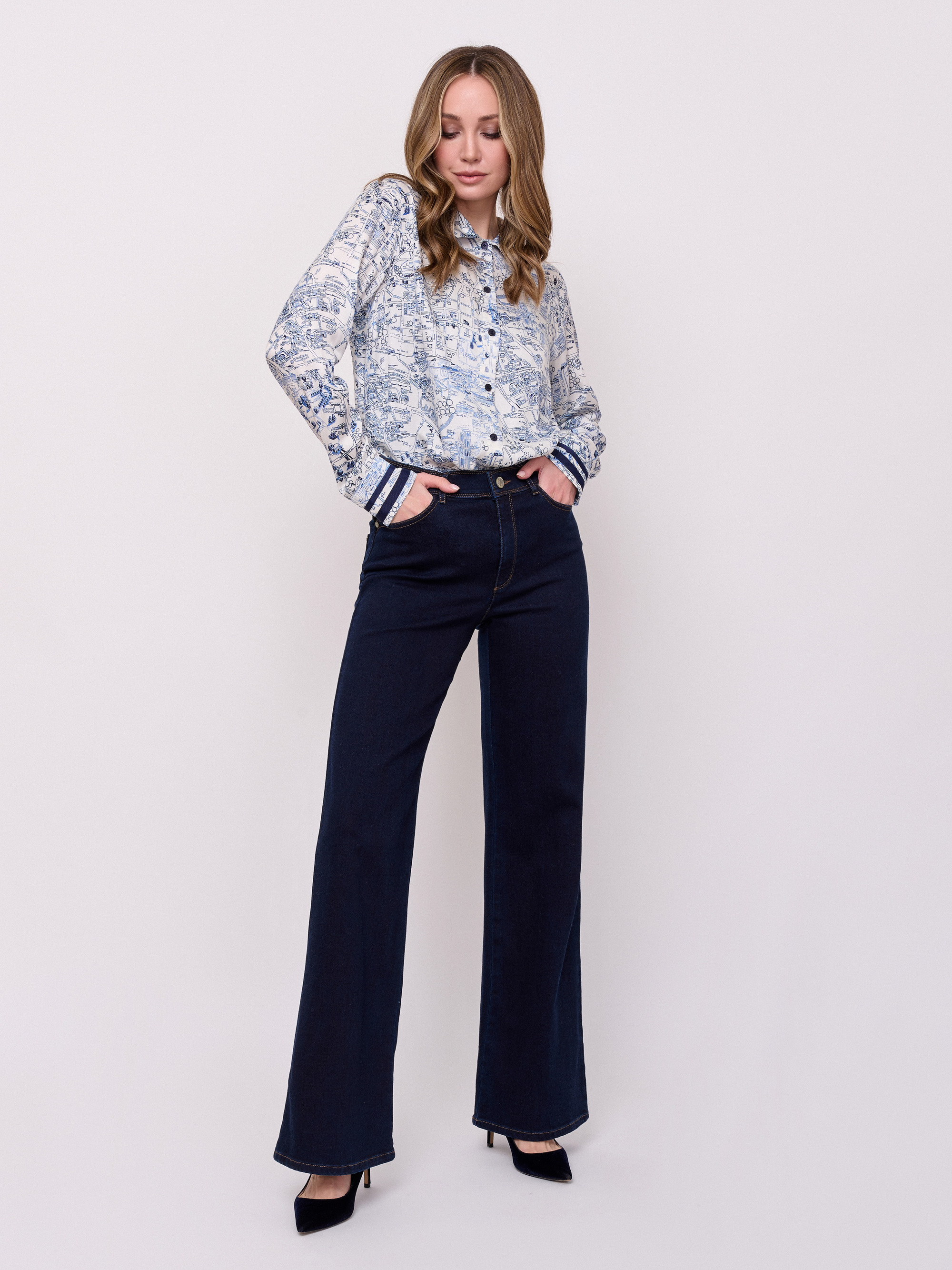 Детали: плотный деним, застежка молния, без рисунка, карманы с отрезным бочком, кройбрючин широкий клеш wide leg, посадка средняя.