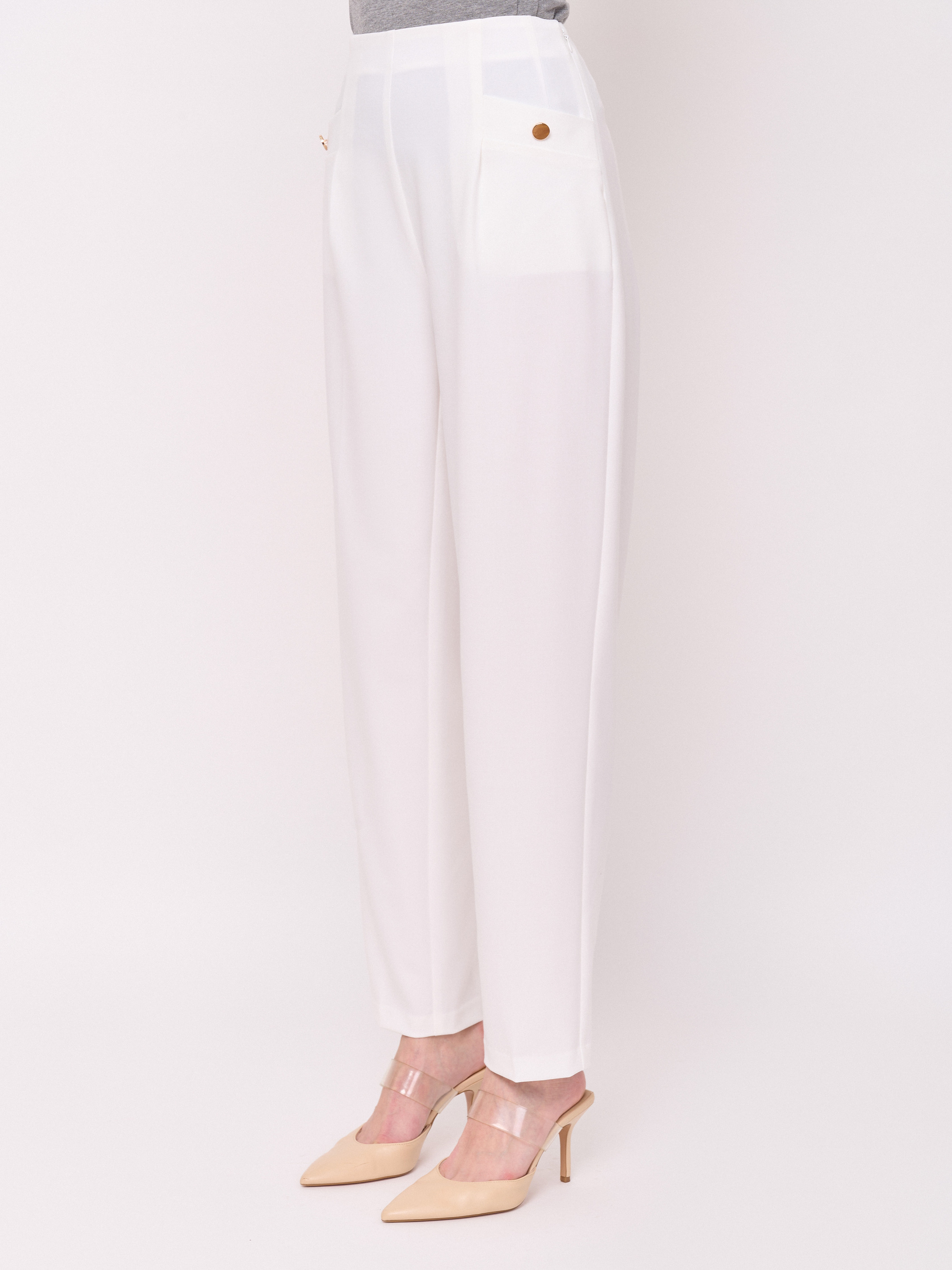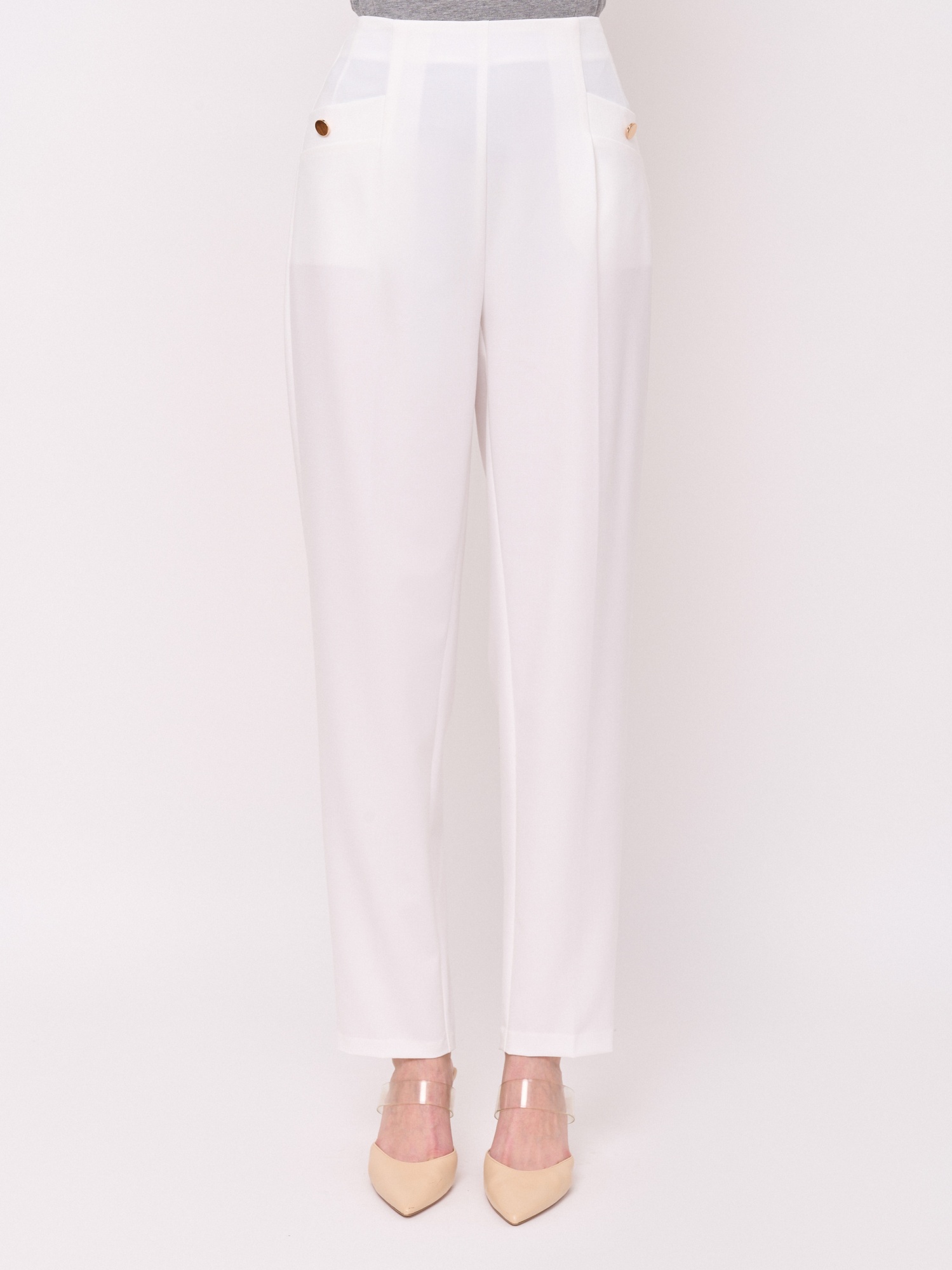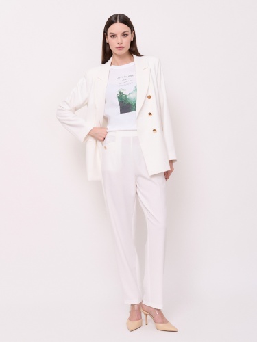 Детали: костюмные брюки, застежка молния, без рисунка, карманы с отрезным бочком, крой брючин зауженный, посадка средняя. Длина брючин: 77 см. Идеально с жакетом UNQ (арт.24120010267)