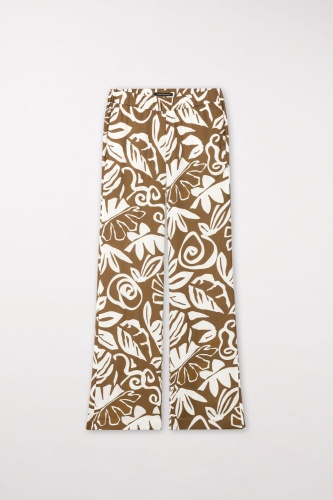 Расклешенные брюки Bootcut из легкой струящейся вискозы с эксклюзивным абстрактным принтом в виде листьев. Брюки имеют два боковых кармана и два декоративных кармана с клапанами.