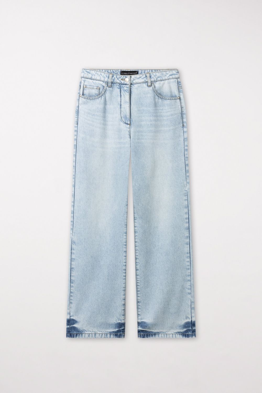 Широкие джинсы с пятью карманами, струящейся отбеленной тканью и эффектными затемнениями по низу. Смесь лиоцелла и хлопка обеспечивает особую мягкость и высокий уровень комфорта.