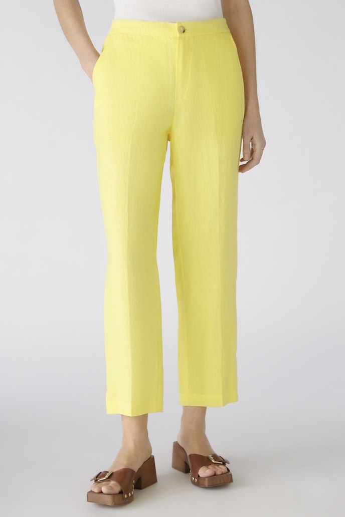 Идеальные летние брюки - 100% лен укороченного кроя, воздушные, удобные и всегда шикарные. Средняя талия, прямой крой, укороченный. Специальная обработка пояса, чистая спереди, удобная сзади с эластичным поясом. Боковые карманы, ложные прорезные карманы сзади. Боковые разрезы на подоле. Длина для размера 42: 72 см.