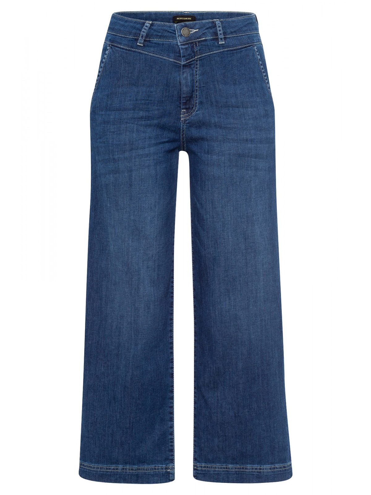 Расклешенные кюлоты несомненный тренд этого сезона! Кюлоты украшены декоративными потертостями и складками, а также декоративной строчкой по низу штанин. Застежка на скрытую молнию и пуговицу. Притачной пояс со шлевками для фиксации ремня.