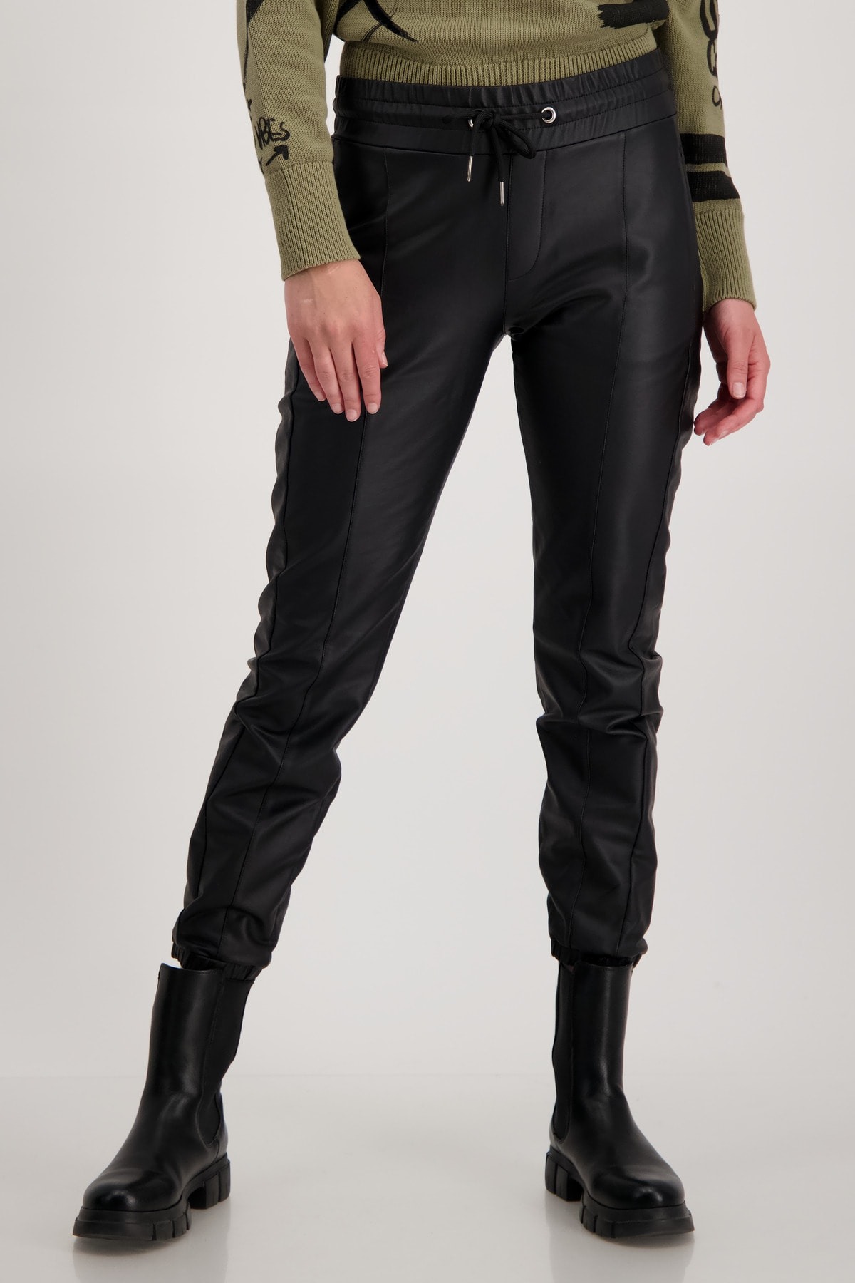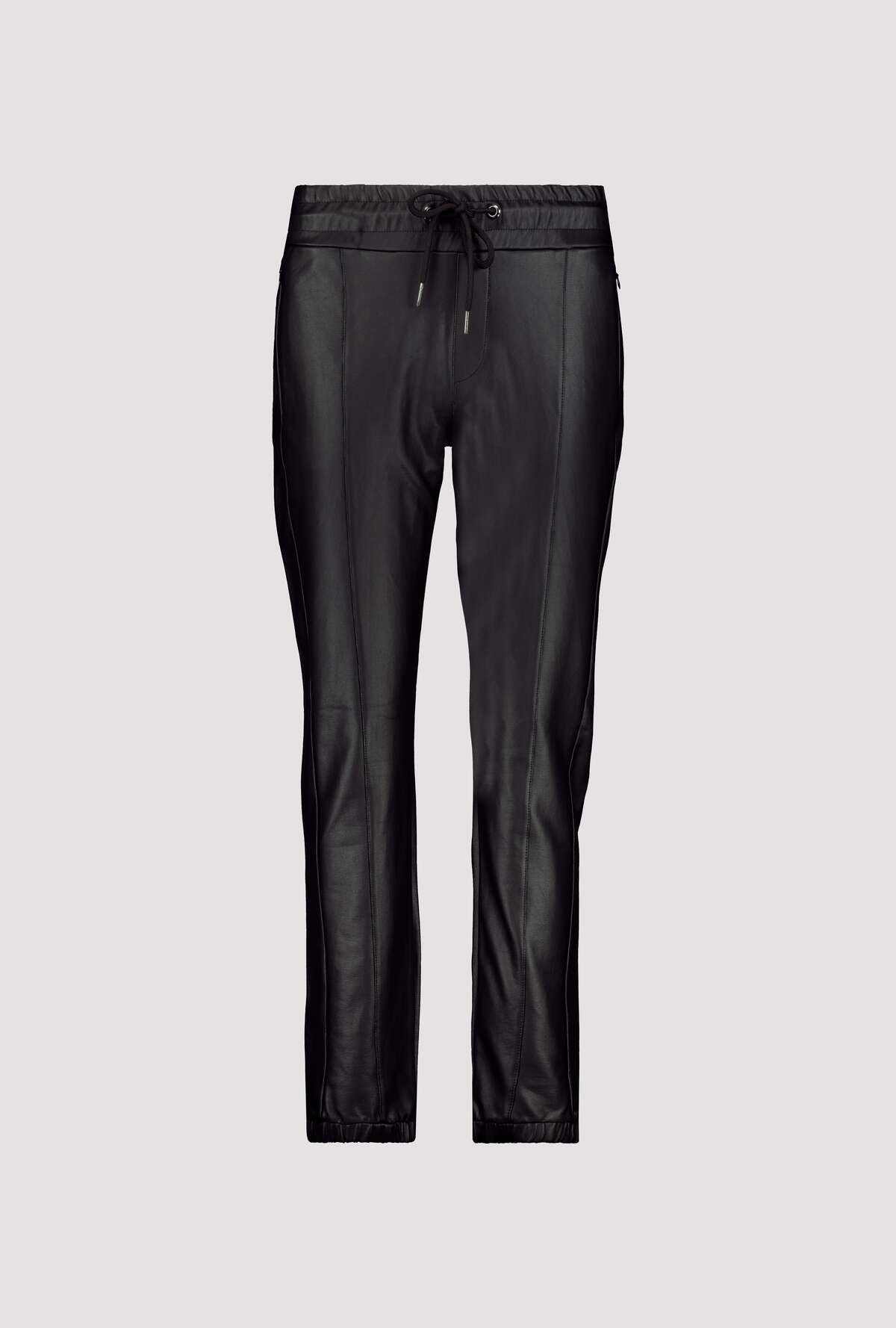 На сайте указны российские размеры. Джоггеры monari из кожи с галстуком. Модель имеет особую изюминку за счет продольных разделительных швов спереди и сзади. Эластичный пояс с петлями для ремня, кулиской с проушинами и завязками для завязывания, а боковые швы с незаметной молнией и два ложных прорезных кармана на спине завершают образ. Рост модели 179 см Длина по внутреннему шву 74 см.