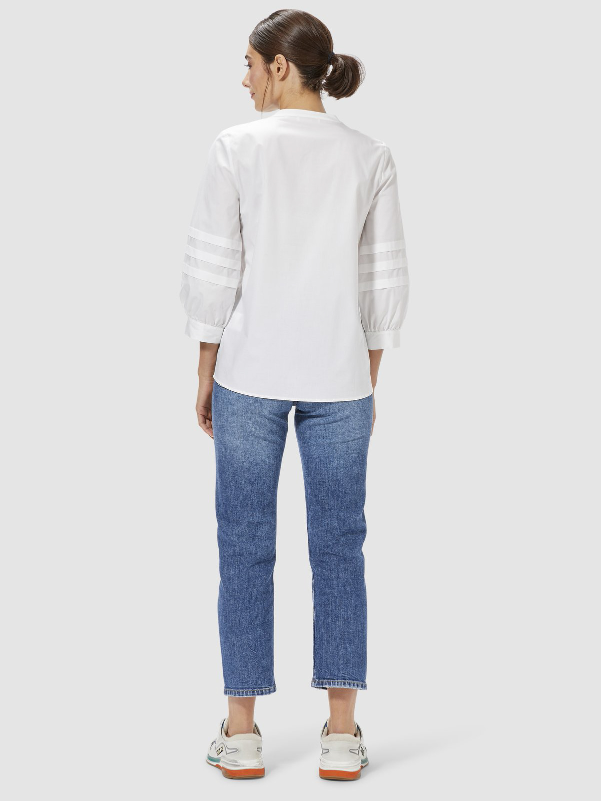 Укороченные джинсы с декоротивными потертостями. Комфортная средняя посадка, пояс со шлевками. Внутренние передние и задние накладные карманы.