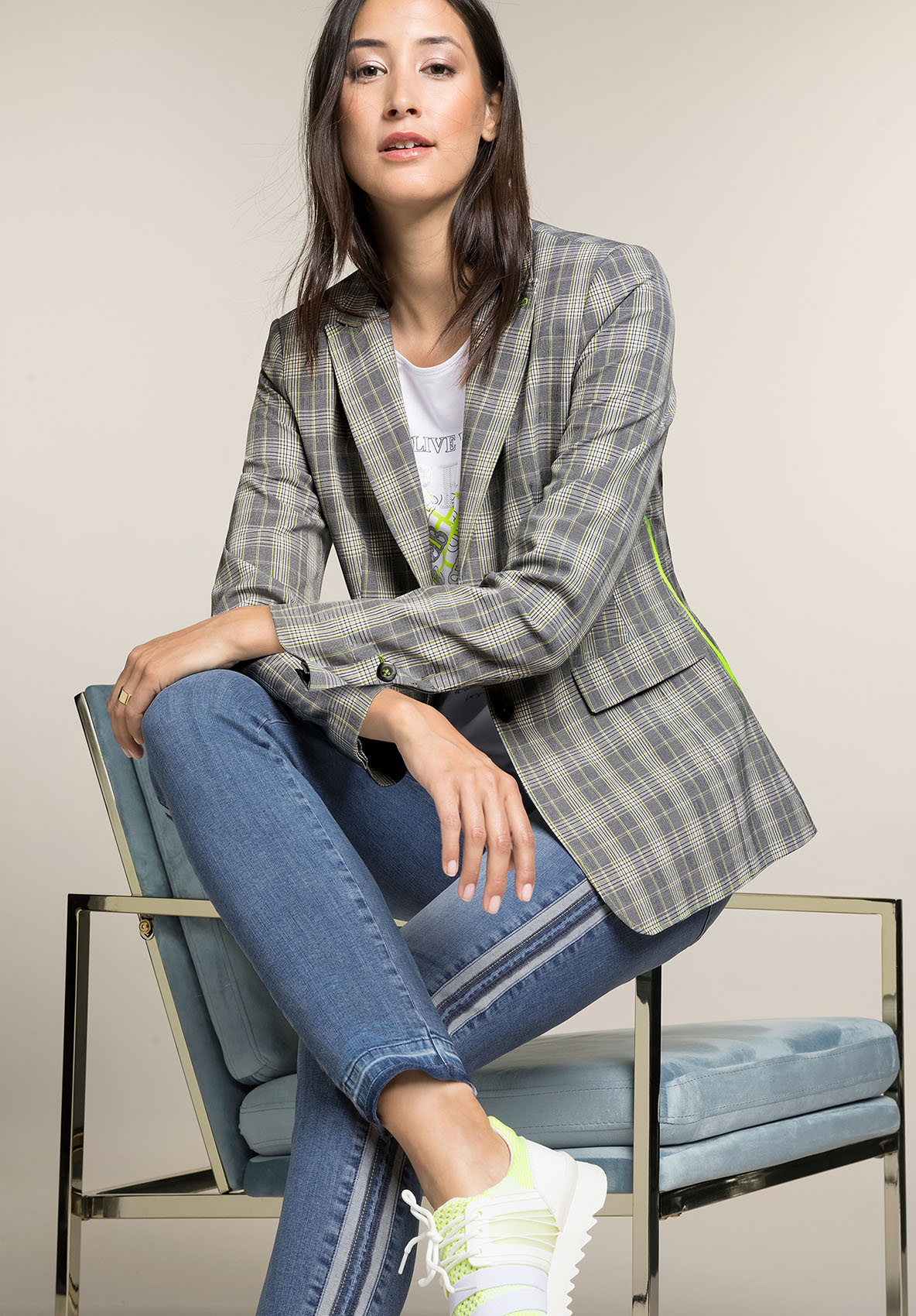 Данная модель джинсов создает оптимальную посадку благодаря прилеганию по линии ног. Модные потертости, полосы по бокам в спортивном стиле. Открытый нижний срез с бахромой придает брюкам демократичный вид. Неважно, спортивный или шикарный образ вы создаете, эти джинсы станут вашей модной изюминкой сезона. • джинсы с эффектом потертости и бахромой по низу • эластичная хлопковая джинсовая ткань • 5 карманов • яркие полосы по бокам • силуэт slim, средняя посадка • длина около 74 см