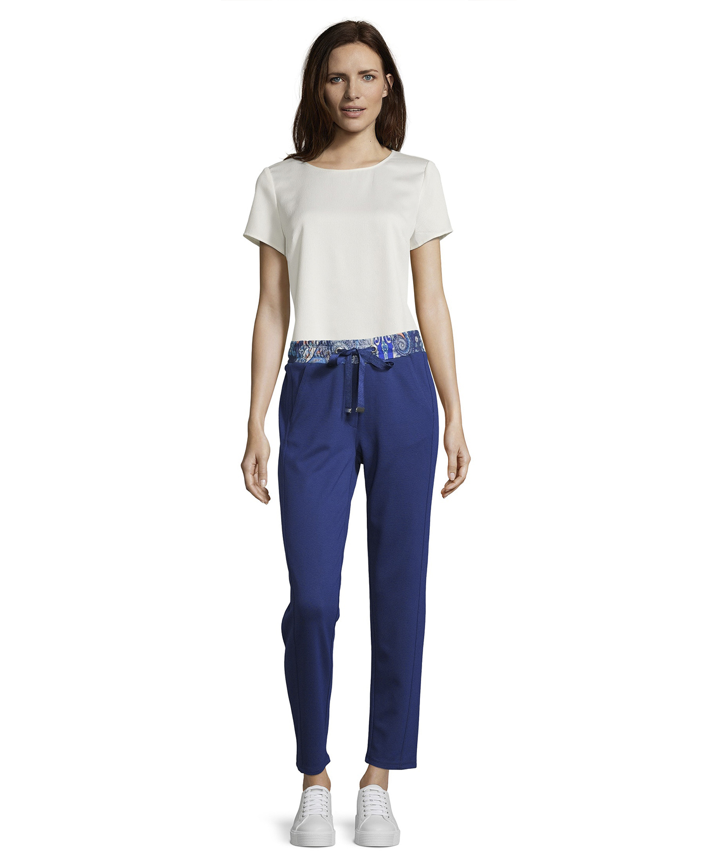 Брюки в спортивном стиле помогут угнаться за модой! Удобный прямой крой, средняя посадка. Контрастный пояс с кулиской. Материал из смеси вискозы, полиамида и эластана приятен к телу и обеспечивает свободу движений. Отличный выбор для прогулок и занятий спортом.