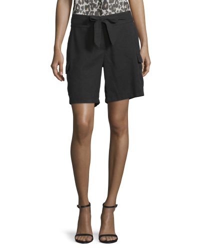Шорты-бермуды - абсолютно трендовая вещь. Накладные карманы по бокам. Акцент модели - пояс-бант. Материал из смеси тенсела и полиэстера приятен к телу и обеспечивает комфорт в ношении. Идеальный вариант для прогулок и путешествий. Независимо от выбора верха и обуви, модный образ с этими шортами вам гарантирован!
