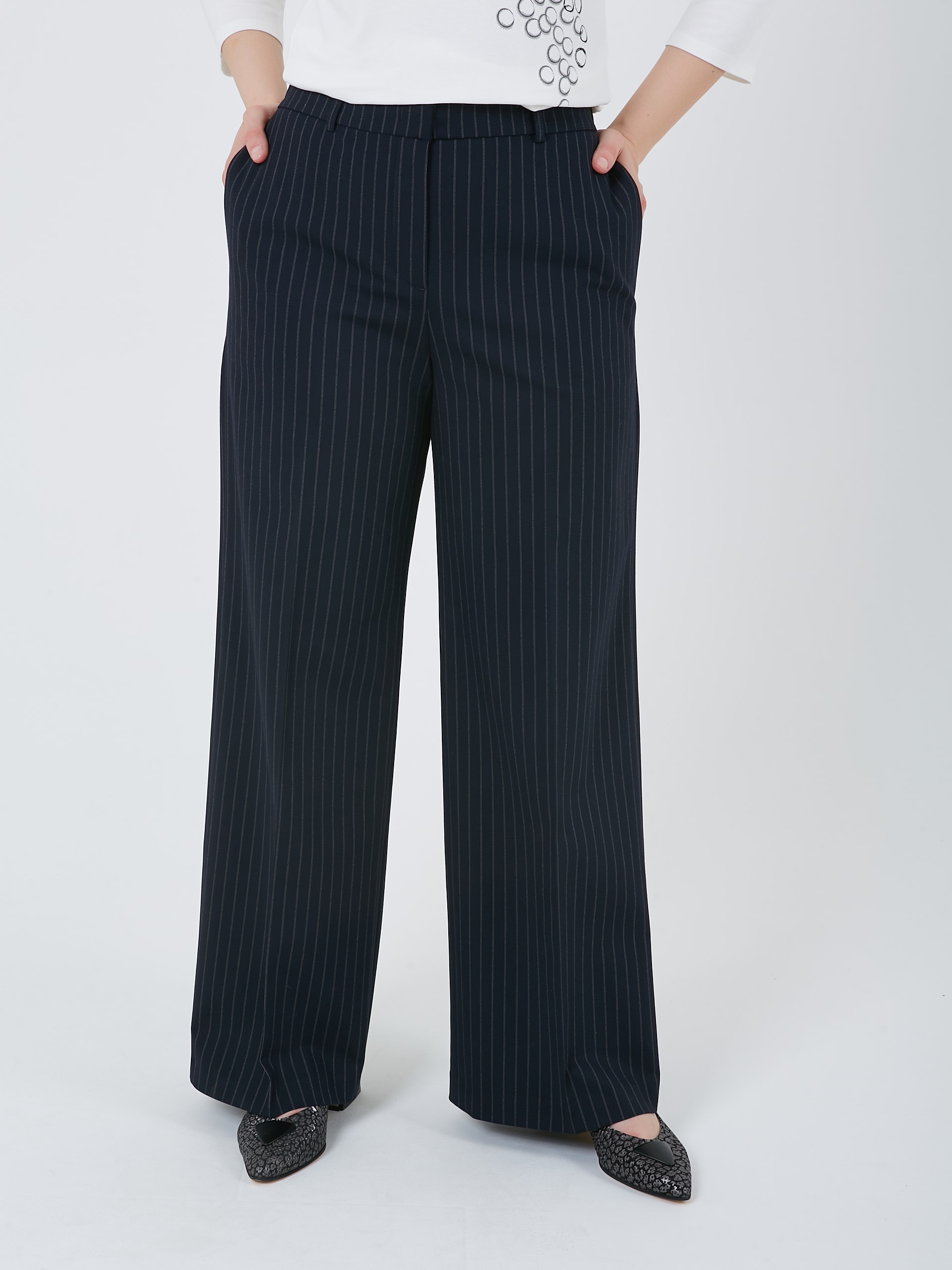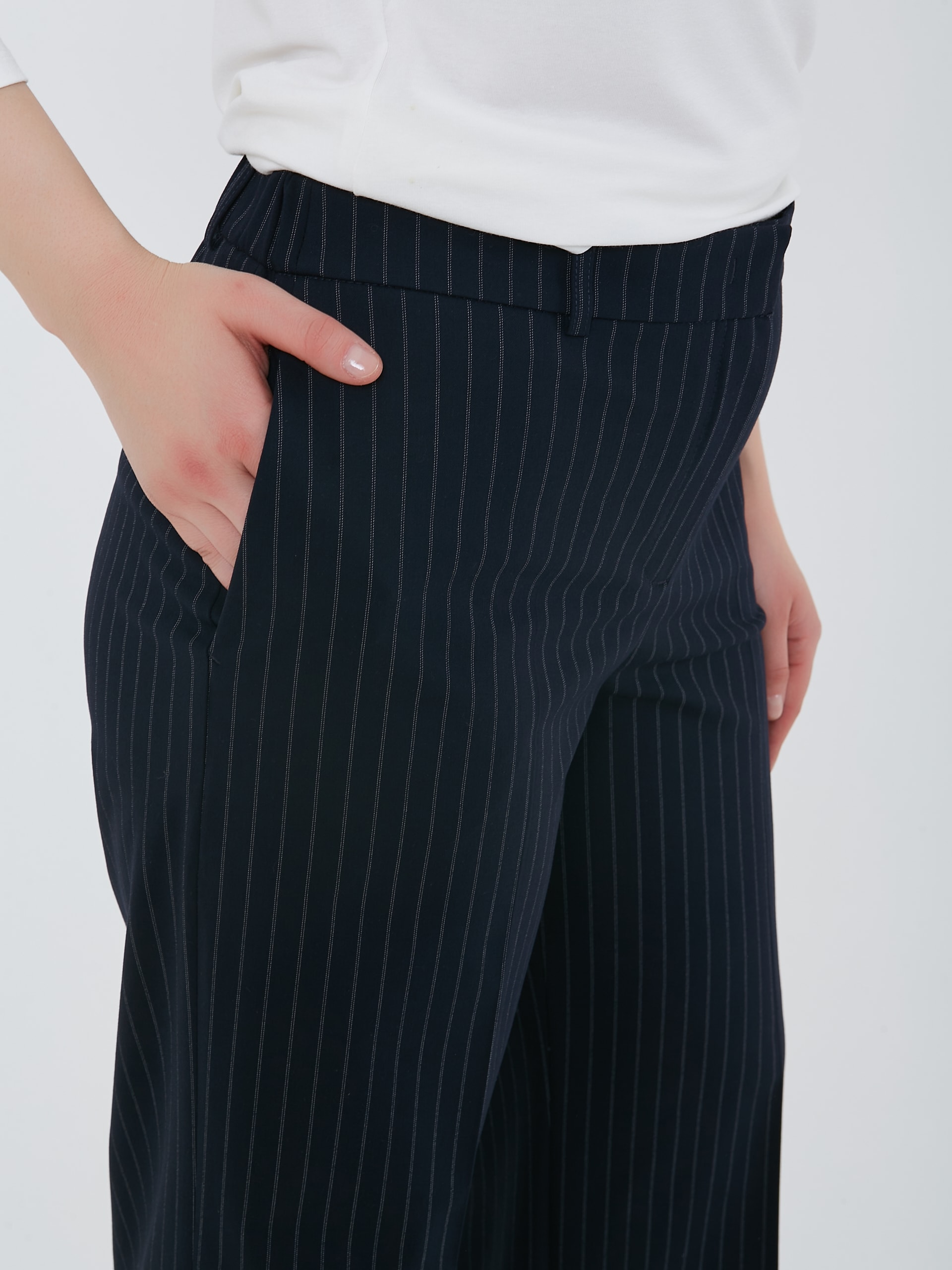 Прямые брюки тёмно-синиего цвета с пунктирной полоской "Страйп". Осень-Зима'25/26. Капсула "Лиловый шар"