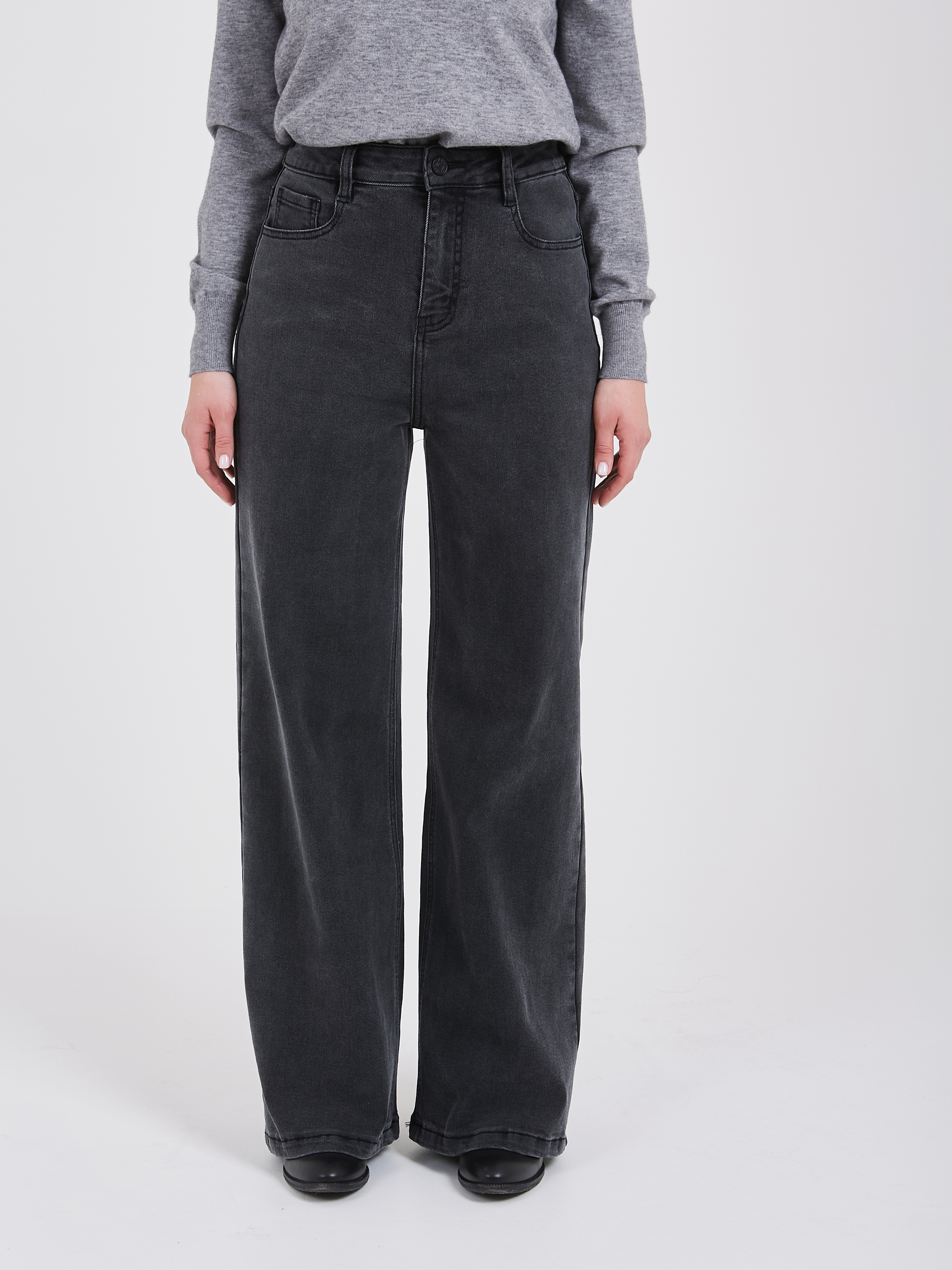 Серые джинсы на высокой посадке с прямым кроем, расширяющимся от бедра до низа. Эта базовая модель выполнена из качественного плотного денима, подходящего для осенне-зимнего сезона. Джинсы удобно сидят на любой фигуре, формируя идеальный силуэт и обеспечивая свободную посадку. Стильный и универсальный элемент гардероба, способный подчеркнуть индивидуальность своего владельца. Осень-Зима'25/26. Капсула "Вишневый сад"