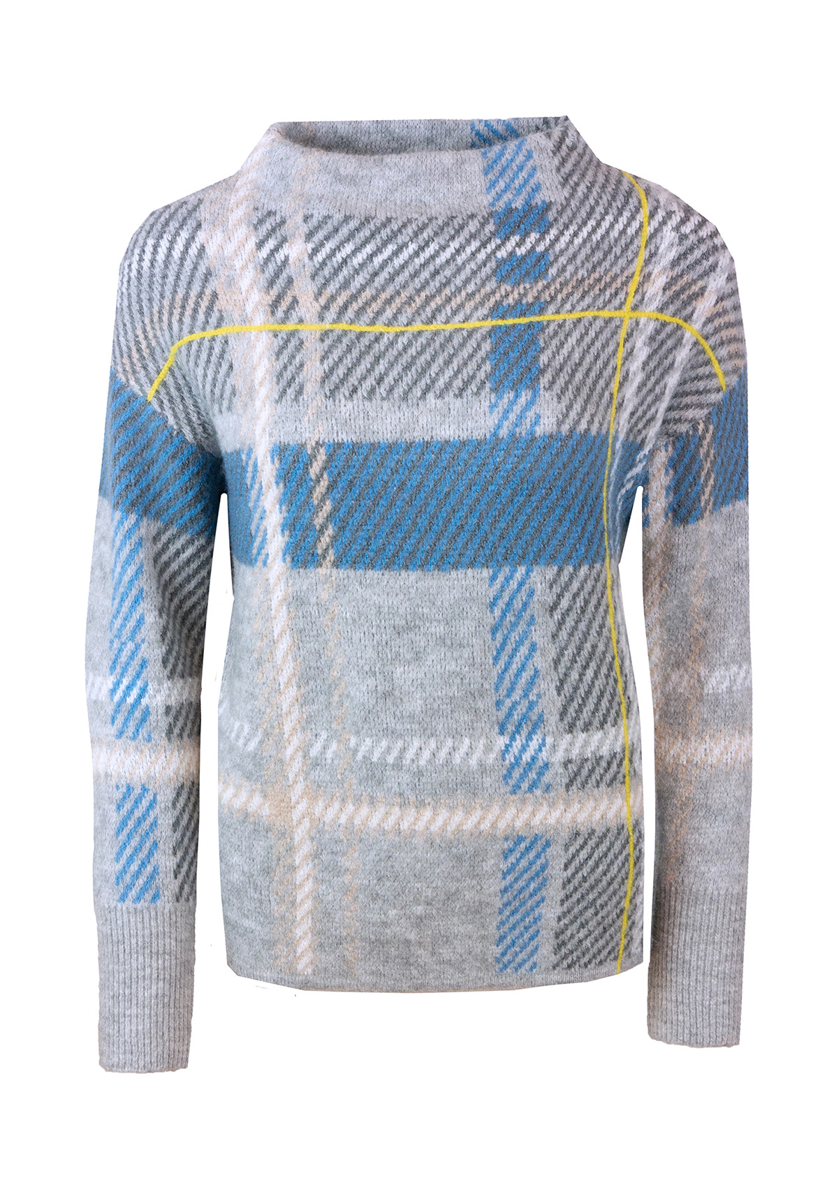 Джемпер свободного покроя великолепно дополнит ваш осенний образ. Вырез горловины "воронка", рукава полной длины со спущенным плечом. Новая интерпретация узора в клетку притягивает восхищенные взгляды. Смесовый материал приятен к телу и обеспечивает сохранение тепла.