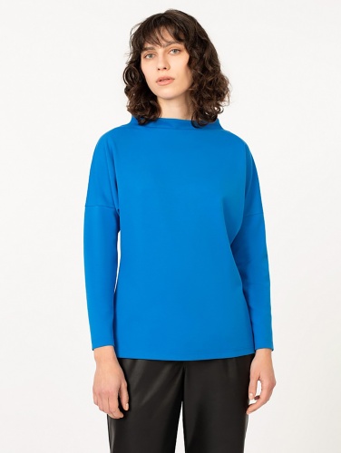 Насыщенный синий оттенок – бесспорный тренд сезона. Джемпер прямого кроя со спущенной линией плеч идеально впишется в образ в повседневном городском стиле. Вырез горловины лодочка. Материал приятен к телу и комфортен в ношении.