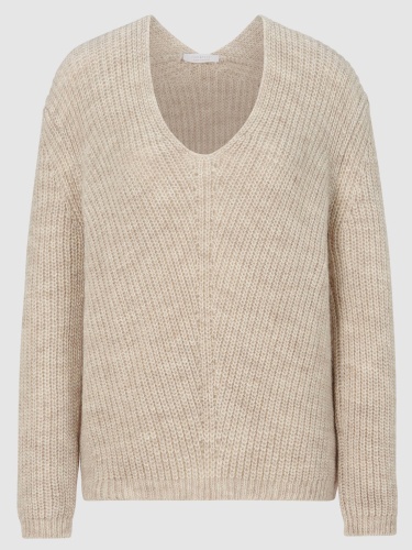 Пуловер крупной вязки с V-образный вырез горловины. Базовая модель прекрасно сочетается с различными образами. Свободный силуэт, спущенная линия плеча создают расслабленный образ. В составе материала шерсть альпаки, что делает пуловер приятным к телу.