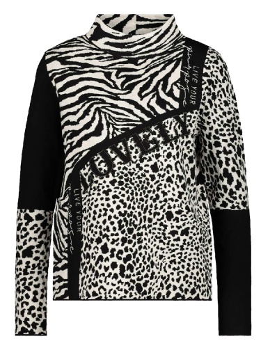 Джемпер прямого кроя в анималистичном дизайне. Воротник-стойка, длинный втачной рукав.
