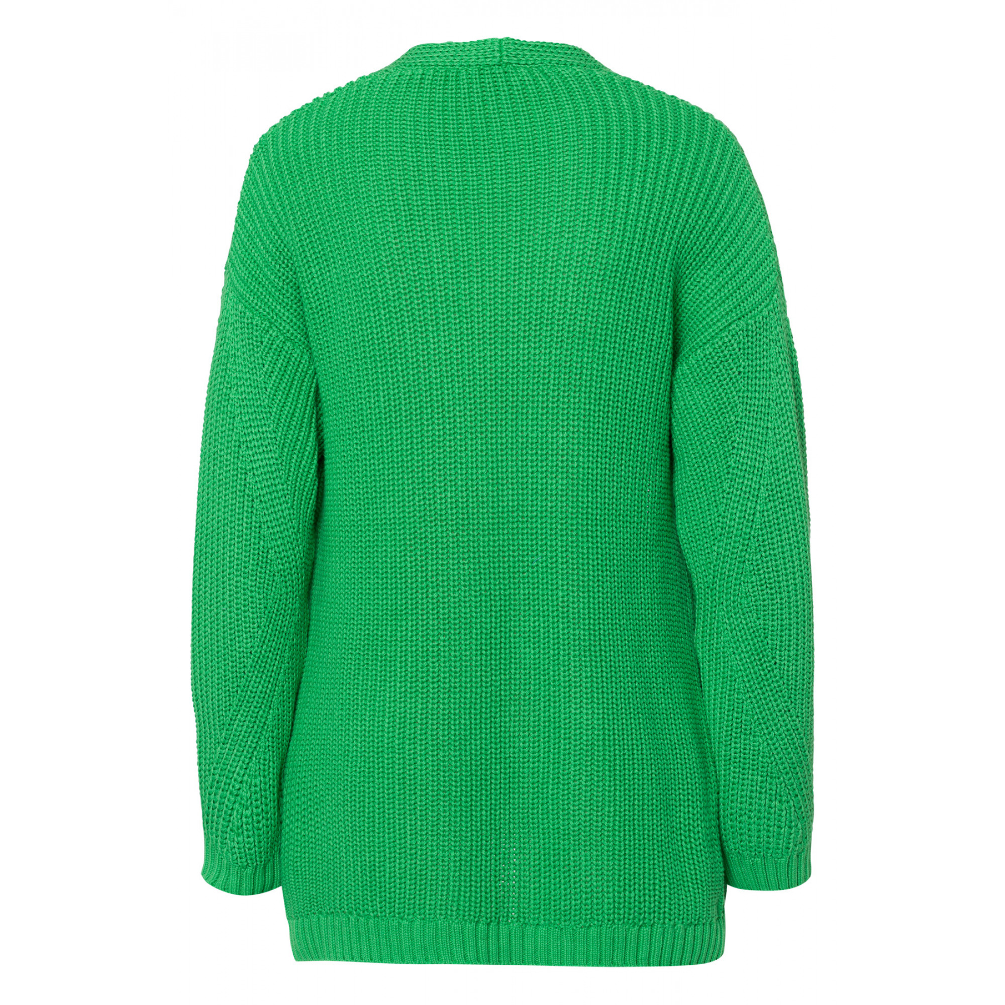 Рубчатый кардиган свободной формы до бедер отлично сочетается с юбкой, брюками или платьем. Без застежки спереди, два накладных кармана. Длина в размере 44 = 75см