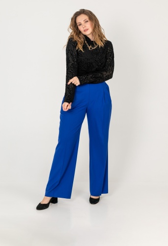 На сайте указаны российские размеры. Ткань: водолазка выполнена из легкого, струящегося нейлона, который так же приятен телу, как шелк. Эластан в составе обеспечивает небольшое растяжение. Крой: слегка приталенный силуэт подчеркивает красоту изгибов женского тела. Передняя часть изделия имеет подклад, задняя часть и рукава – без него, что позволяет показать изысканность ажурного материала. Высоту горла водолазки можно регулировать подгибом. Отделка: в основе стильного ажурного рисунка на ткани лежат животные мотивы, которые выглядят уместно и торжественно. Насыщенный черный цвет водолазки дает возможности для создания как повседневных, так и вечерних образов. Сочетайте блузку с контрастными брюками, юбками-карандаш и жакетами из коллекции Stern.