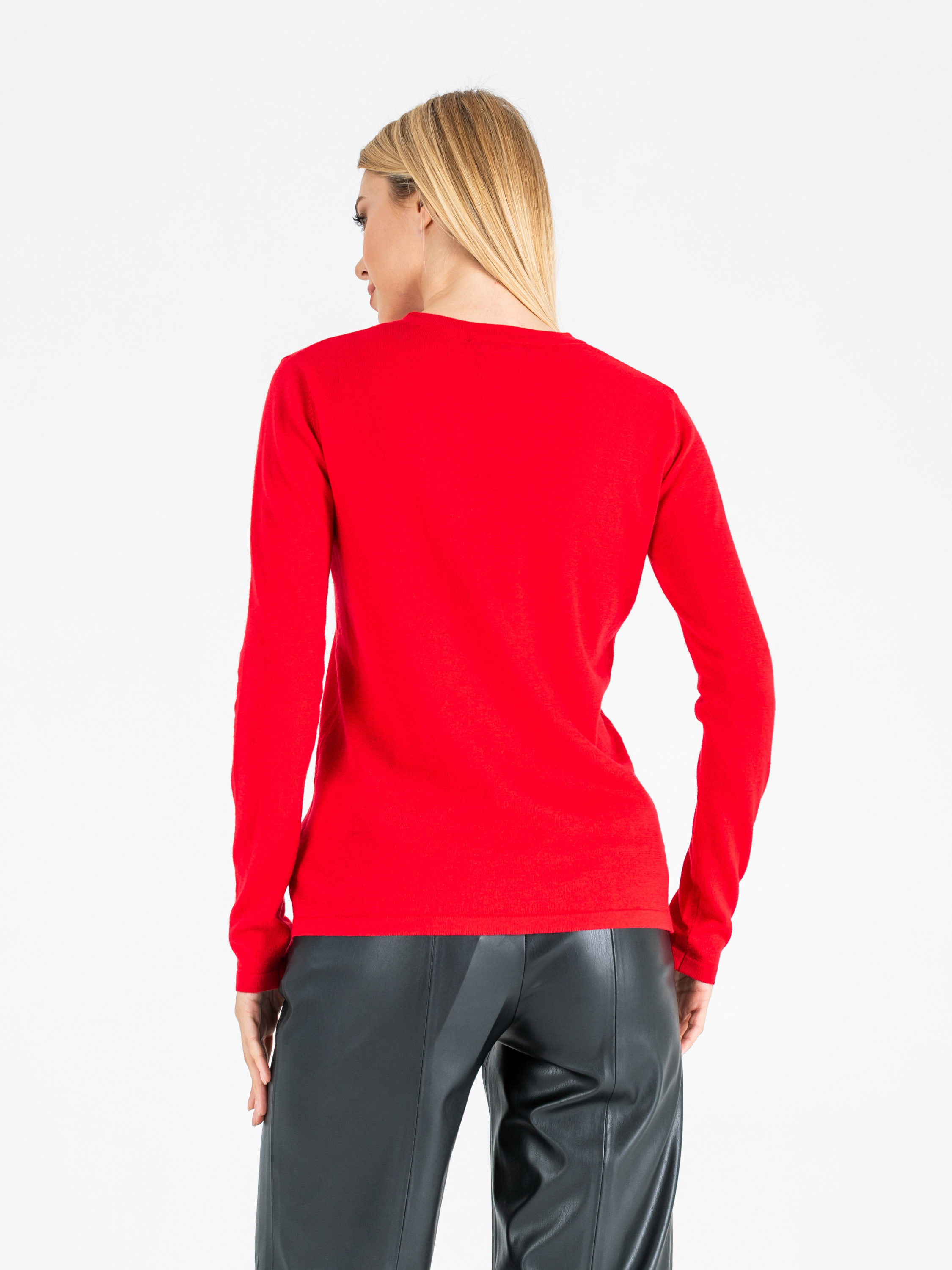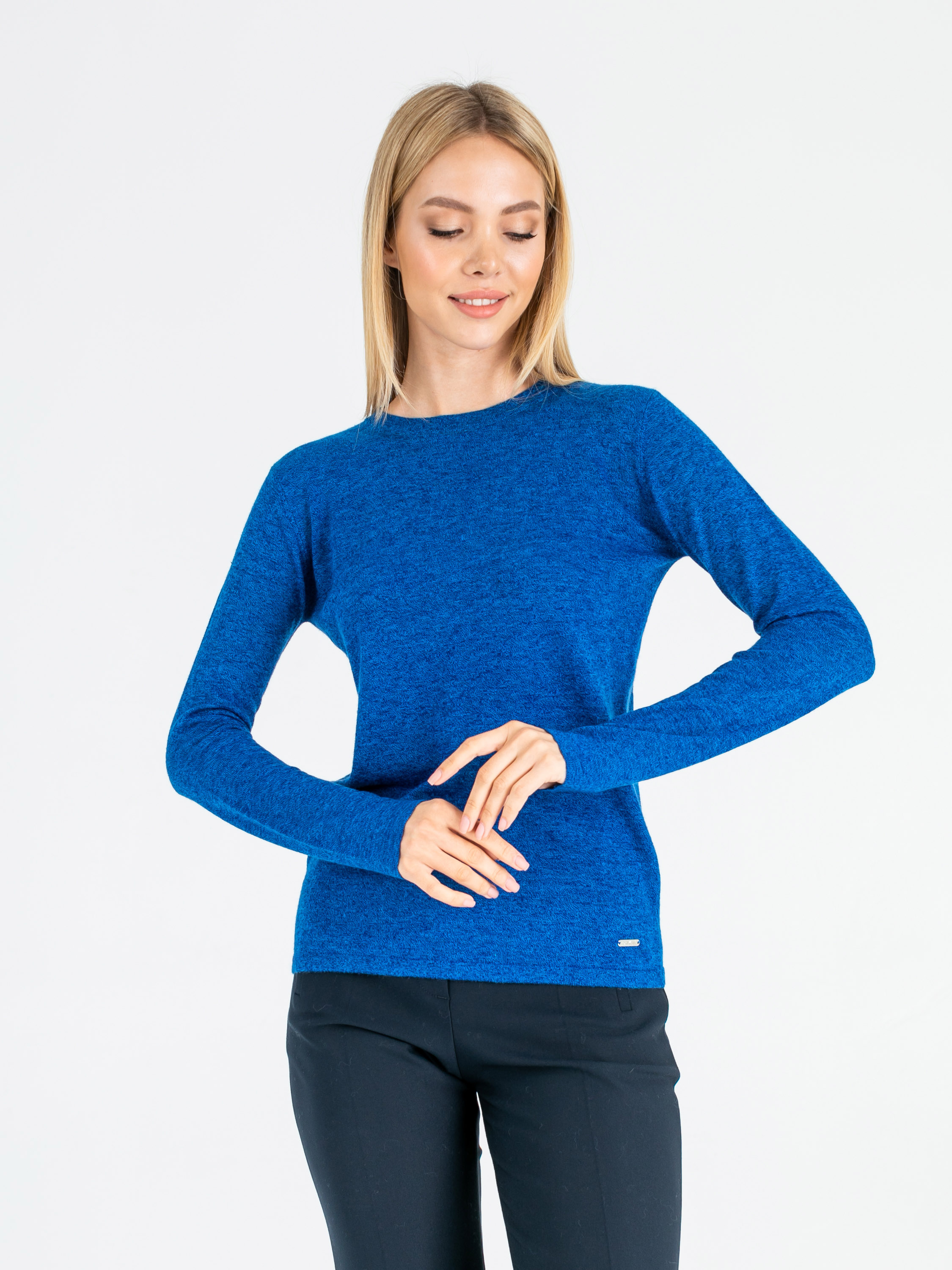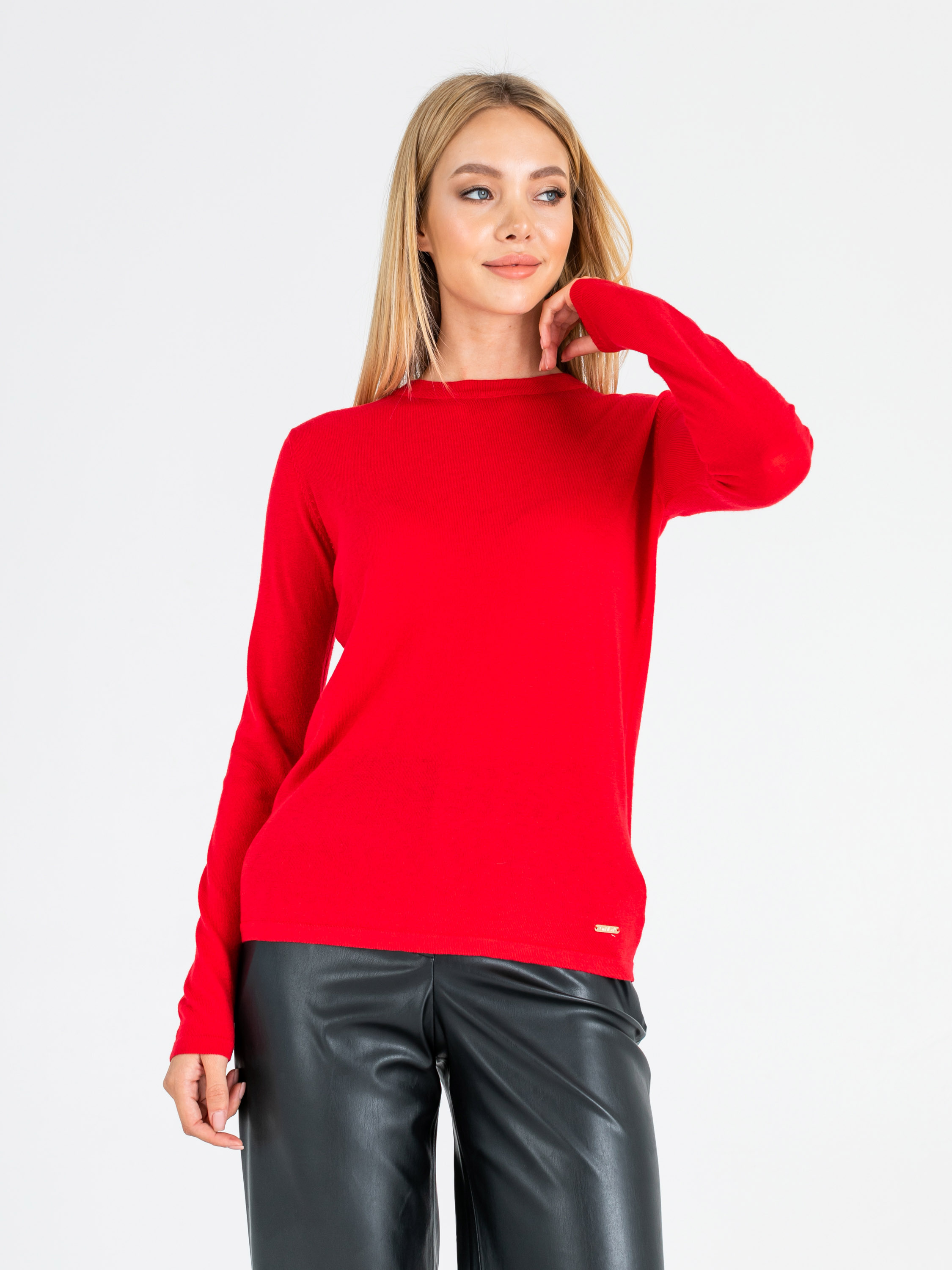 На сайте указан российские размеры. Ткань: 54% полиэстер, 20% акрил, 20% нейлон, 6% шерсть. Крой: гладкий трикотажный джемпер приталенного силуэта. Модель с круглым вырезом – идеальный вариант для повседневной носки, занятий спортом или создания рабочего образа. Тонкий, легкий и при этом очень теплый джемпер подчеркивает все достоинства фигуры. Представлен в трех актуальных оттенках – насыщенном синем, ярком красном и спокойном бежевом. Отделка: украшен фирменным металлическим шильдиком. С коллекцией брюк и юбок для создания полноценного образа можно познакомиться в соответствующих разделах нашего сайта. Рост модели - 177 см