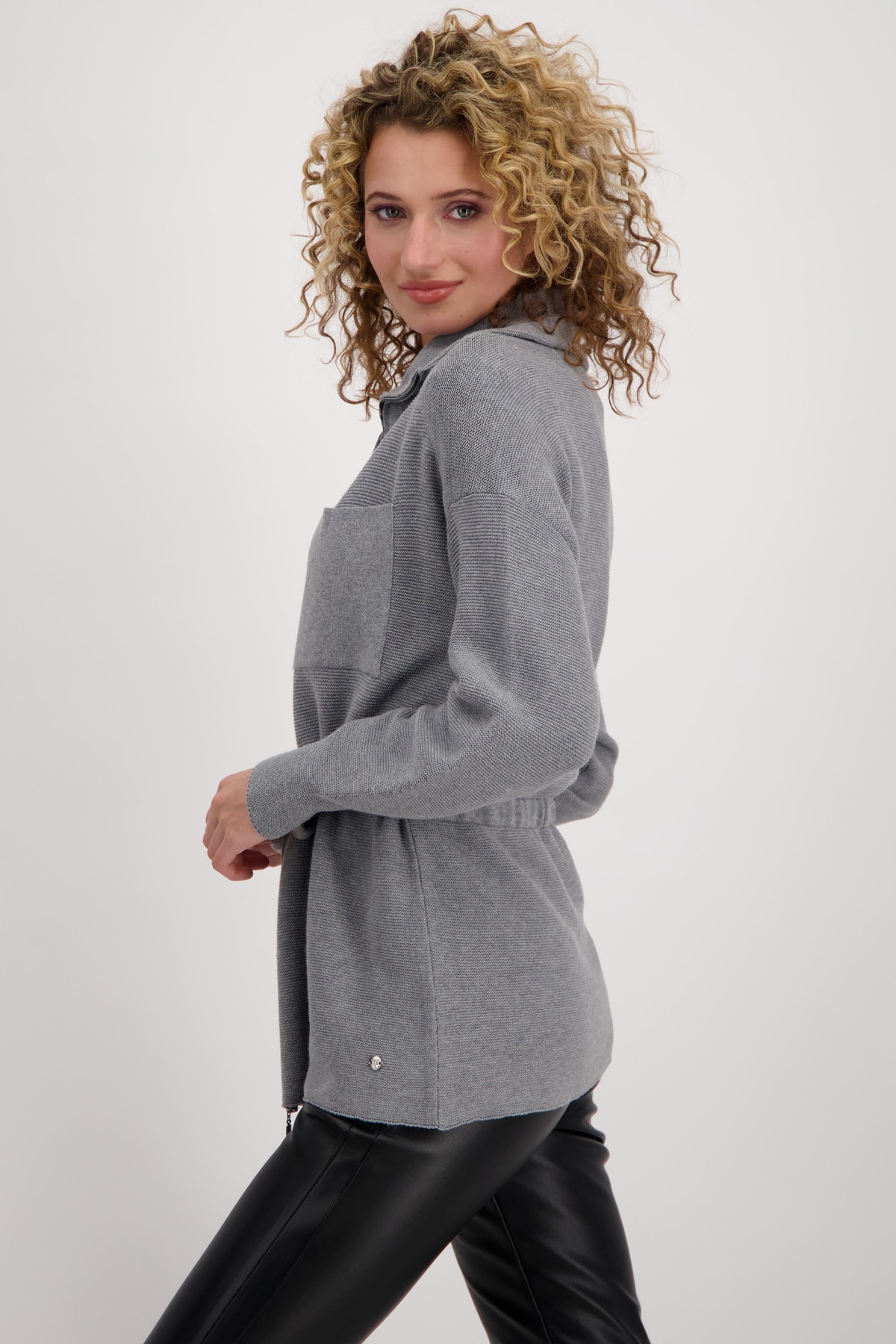 На сайте указаны российские размеры. Блейзер из хлопка с завязками на молнии. Мягкий кардиган от monari имеет модный дизайн изнаночной вязки. Рукава реглан, вставка чулочной вязкой на плечах и прямой крой с воротником-тройе и кулиской с завязками на талии придают модели непринужденный вид. Два накладных кармана с узором лицевой гладью и сверкающими стразами на груди украшают перед. Модель ростом 176 см.