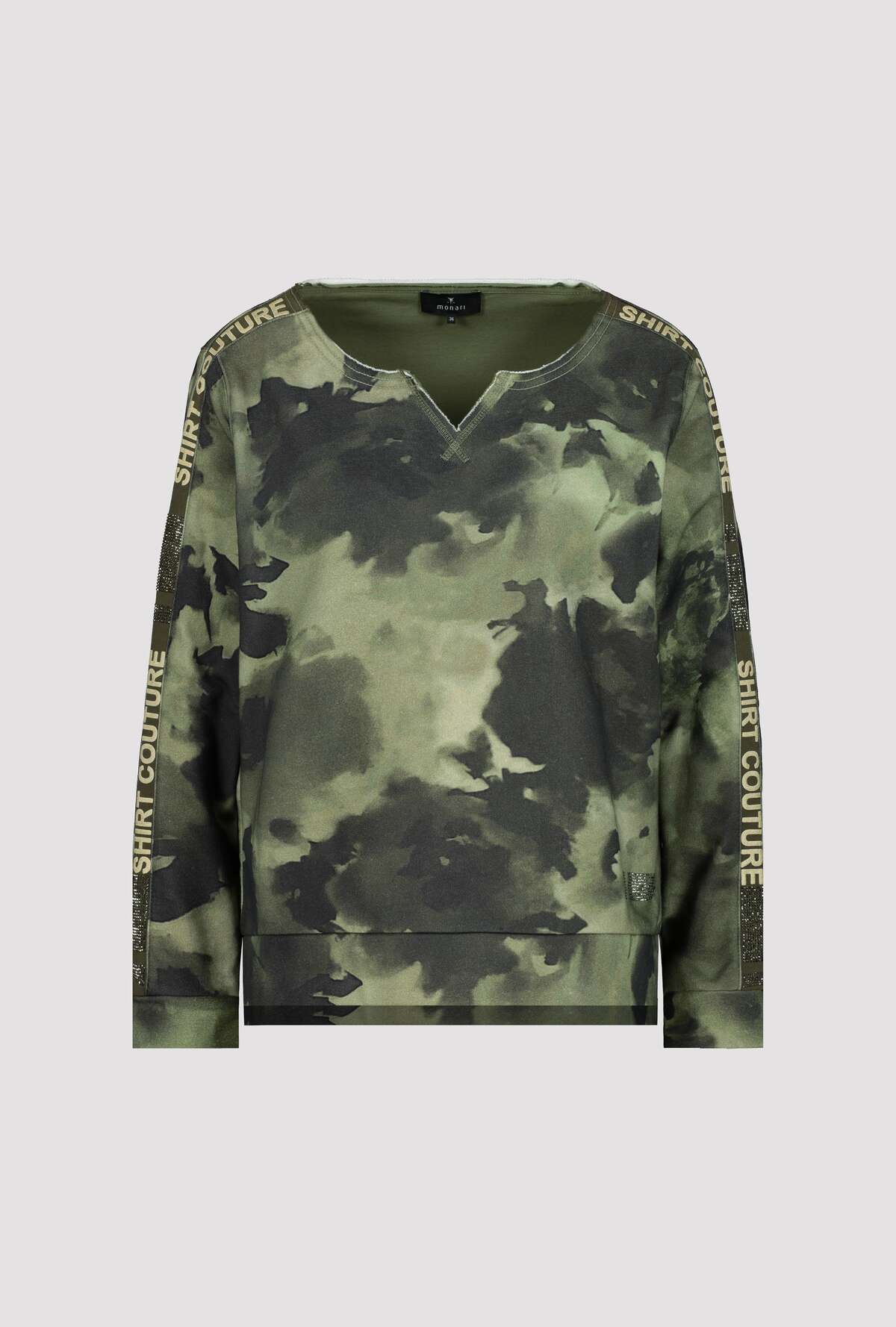 На сайте указаны российские размеры. Толстовка с круглым вырезом с принтом под батик и стразами. Модель с двусторонней молнией легко расстегивается и закрывается, а передняя часть модели с воротником-стойкой дополнена двумя прорезными карманами на молнии и прорезным карманом на уровне груди. Подол легко регулируется благодаря кулиске с резинками и стопорами шнура. Модель ростом 175 см. Длина спины 44 размера 64 см, а по переду - 62 см.