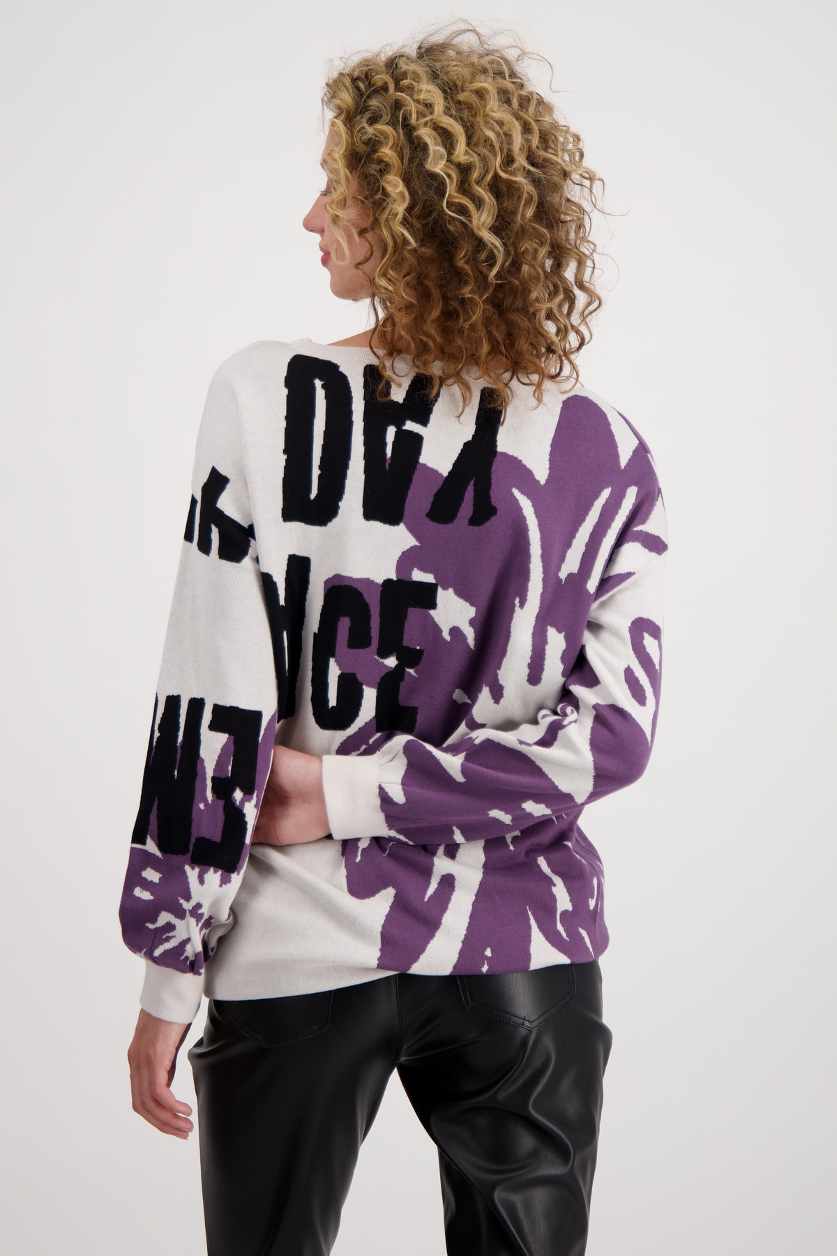 На сайте указаны российские размеры. Хлопковый вязаный свитер с круглым вырезом и стразами. Большой жаккард с цветочным узором и надписью прекрасно сочетается со сверкающими деталями из страз в буквах. Широкие манжеты на рукавах и по низу завершают дизайн. Прямой фасон отличается круглым вырезом горловины, слегка приспущенной линией плеч и боковым швом спереди. Спереди нашивка с вышивкой и сверкающими стразами. Абсолютное зрелище. Идеально сочетается с кожаными брюками и высокими ботильонами. Рост модели 176 см. Длина по спинке 44 размера составляет 73 см, а по переду – 70 см.