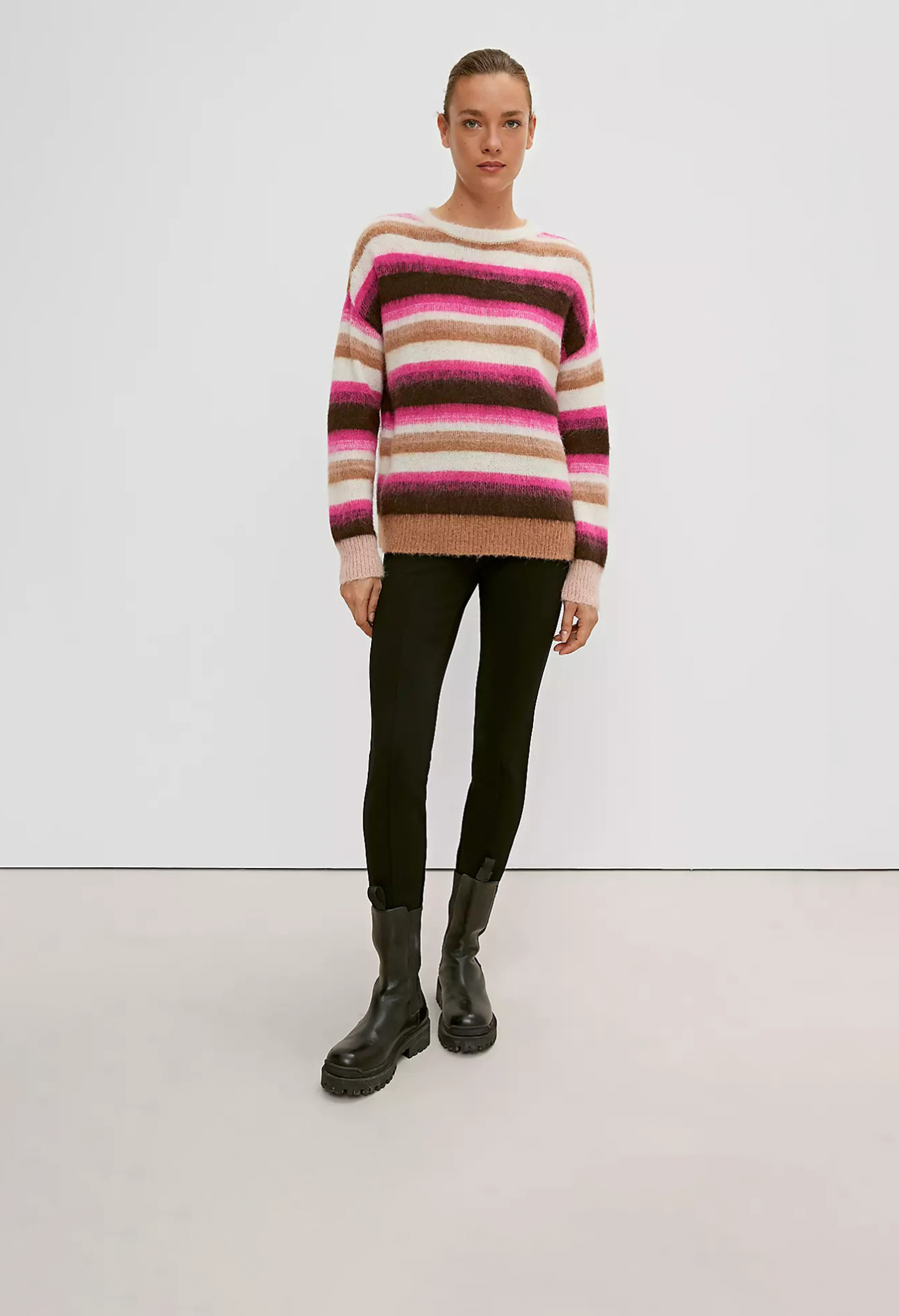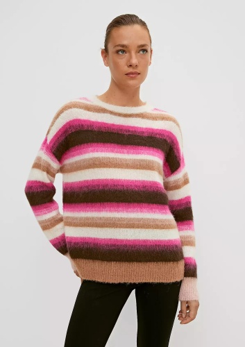На сайте указаны российские размеры. Вязаный джемпер с полосками градуированного цвета. Круглый вырез горловины. Длинные рукава с манжетами в рубчик, заниженная линия плеча. Подол с ребристой отделкой. Длина спины 64 см в размере 42.