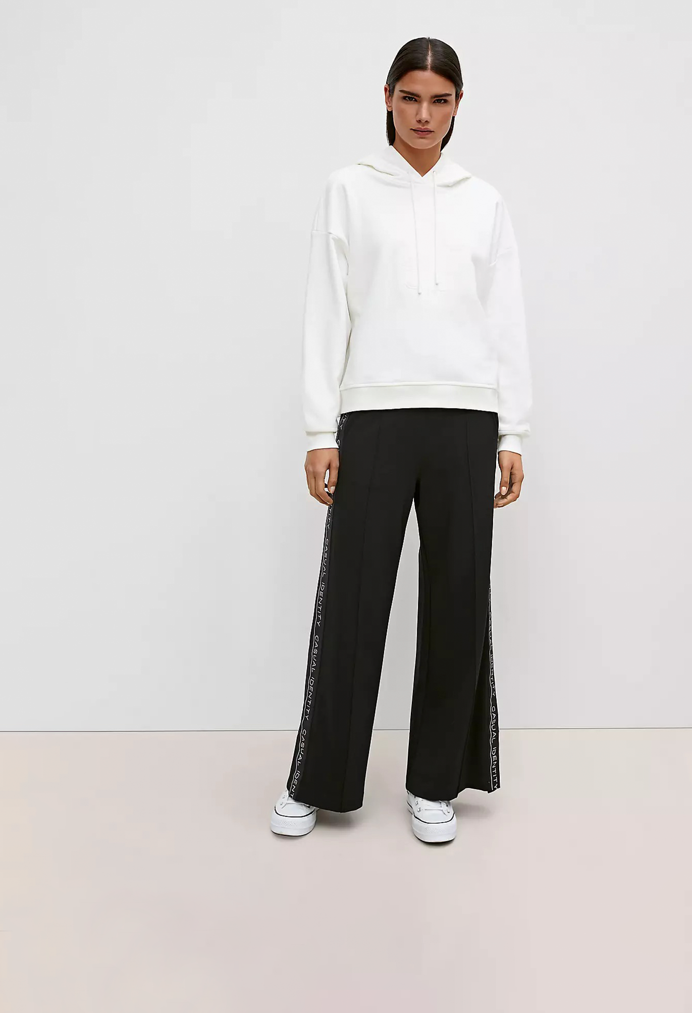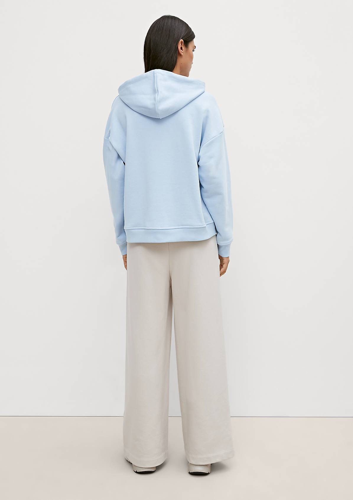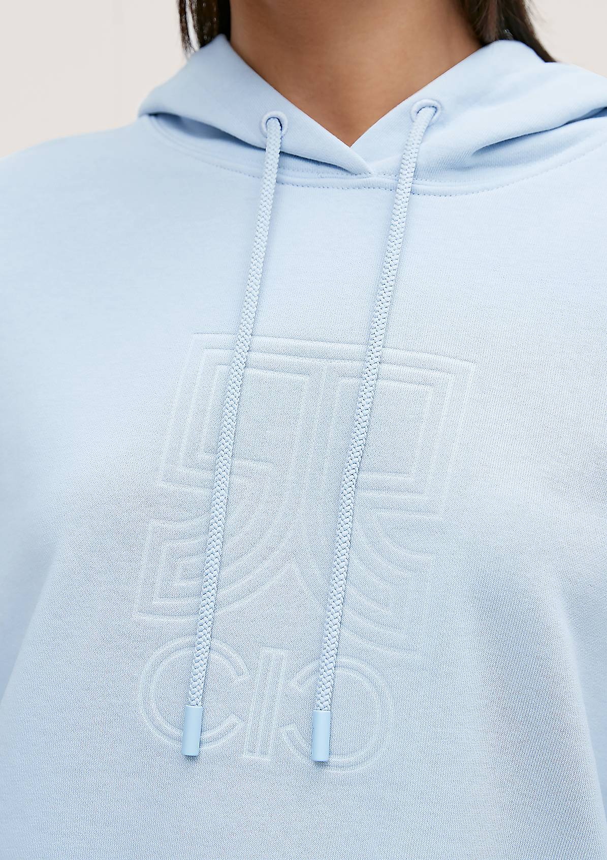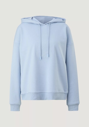 На сайте указаны российские размеры. Толстовка с капюшоном и рельефным принтом. Длинные рукава с ребристыми манжетами. Подол с ребристой отделкой. Длина спины 59 см в размере 42. Рост модели 177 см.
