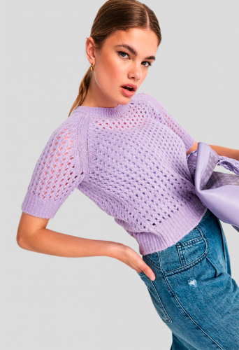 Легкий пуловер с короткими рукавами из сверхмягкой полушерстяной пряжи всегда будет отличным компаньоном, будь то прямо на теле или в качестве накидки. Изысканная ажурная вязка и модные рукава реглан придают базовый повседневный шарм.