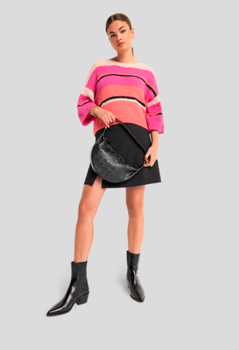 Повседневный трикотаж для прохладных дней. Свободный свитер с круглым вырезом модной расцветки вносит разнообразие в простые фасоны. Мягкое, элегантное сочетание альпаки, шерсти и полиамида обеспечивает удобную посадку и приятный эффект.