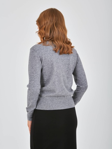 Джемпер средней длины прямого силуэта из мягкой вискозы с добавлением полиэстера и нейлона. Перед и спинка по низу обработаны манжетой. Длинные втачные рукава с манжетами. Круглый вырез горловины.