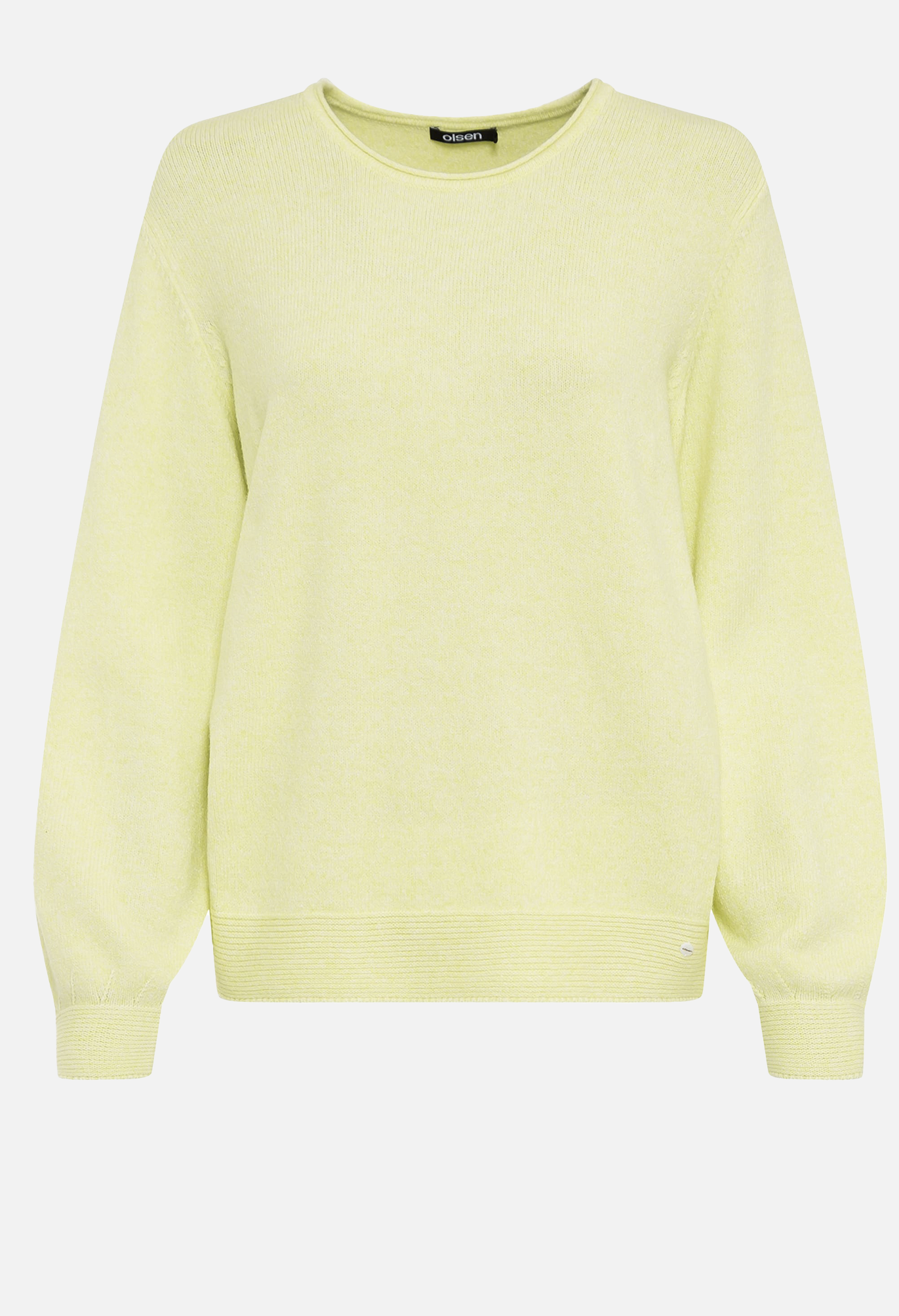 Cвитер из мягкой пряжи с меланжевым эффектом. Низ и манжеты отделаны тонкой ребристой вязкой. Рукава немного шире. Джемпер скроен прямо и слегка прилегает к телу.