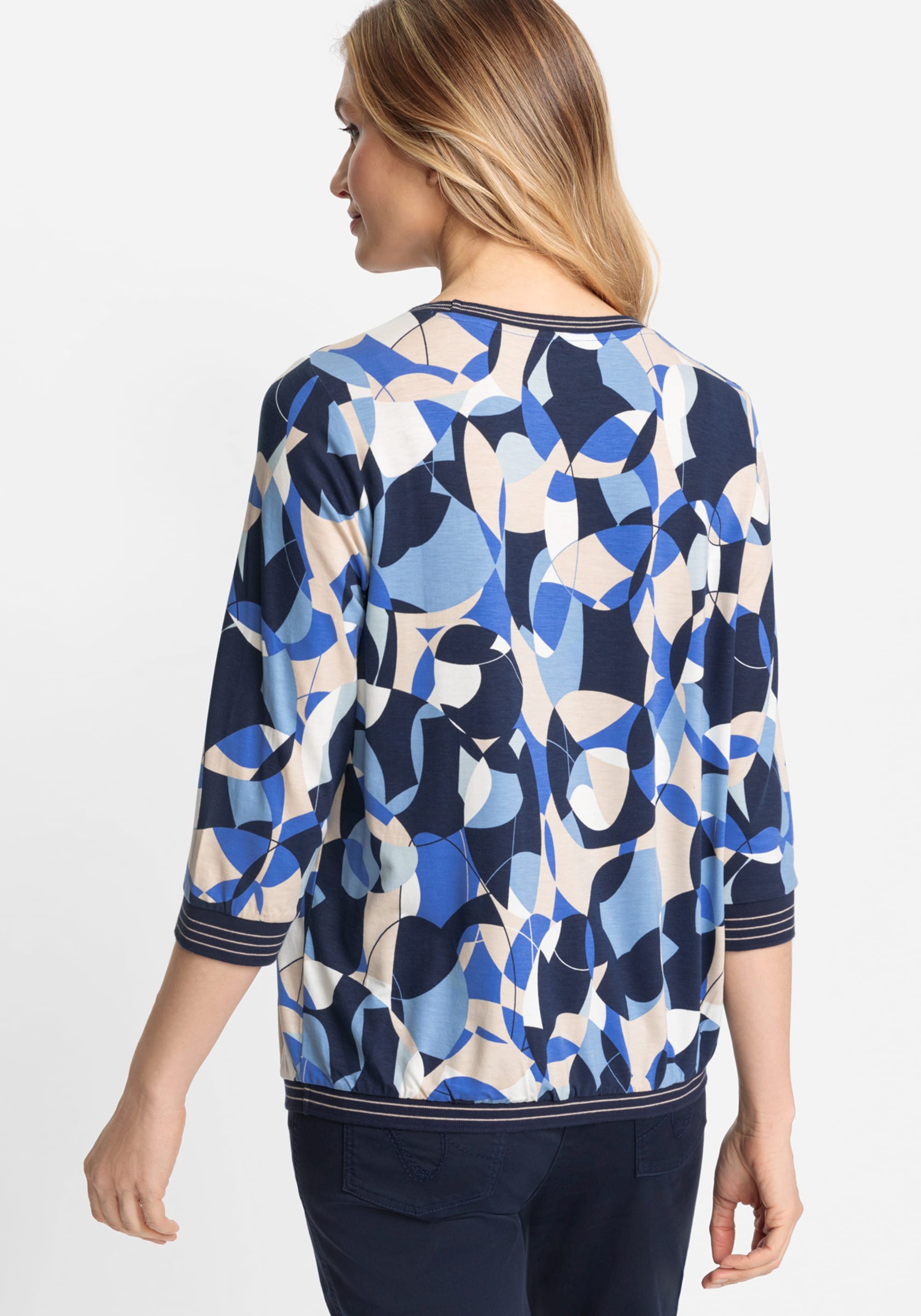 Этот эффектный джемпер украшает геометрический узор в ярких тонах, напоминающий о 70-х годах. Трикотажная отделка в тонкую полоску завершает вырез, манжеты и подол. Свободный и непринужденный крой Clara имеет окантовку по краю для дополнительного комфорта. Ткань имеет мягкую и приятную драпировку благодаря экологически чистым волокнам.