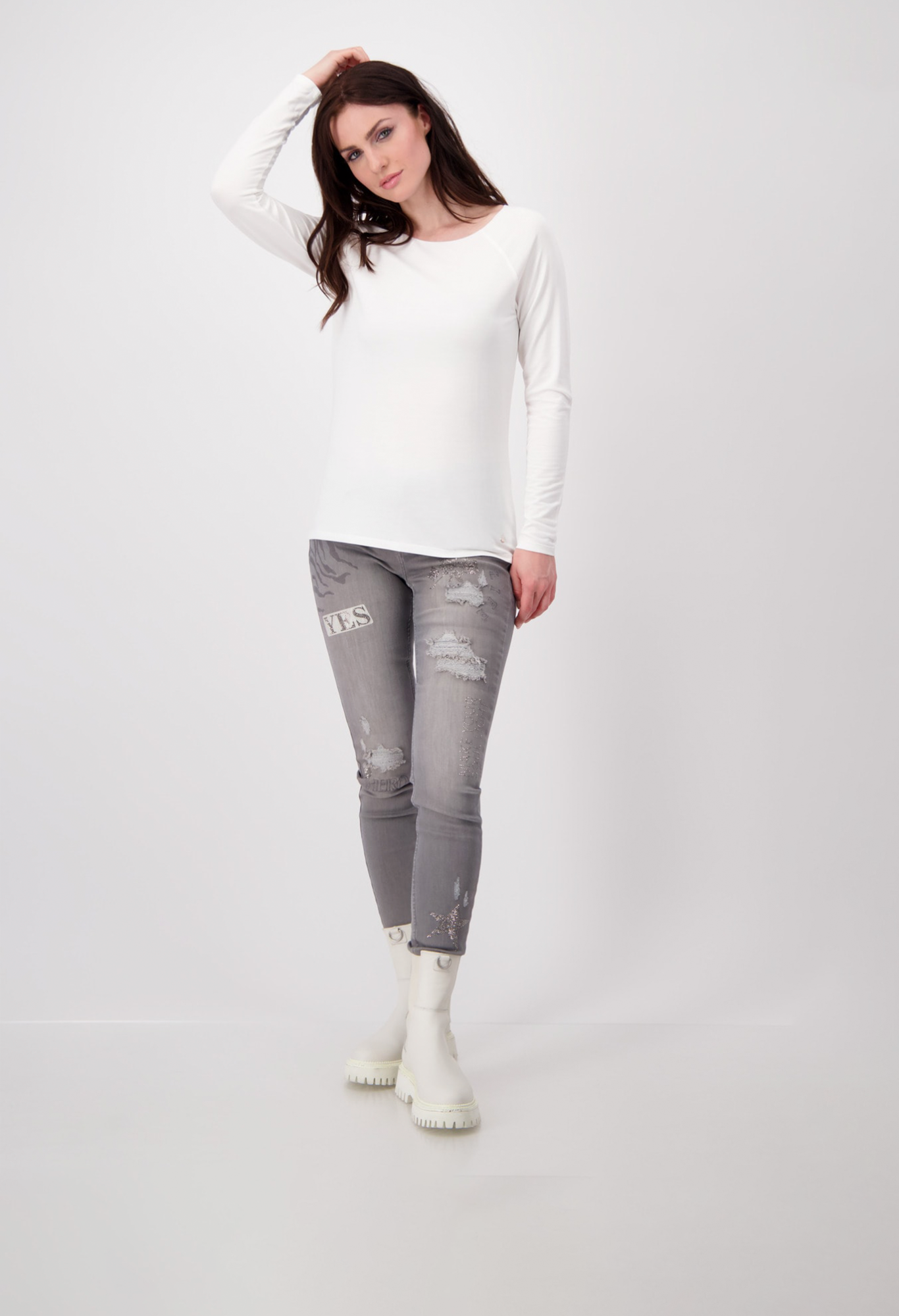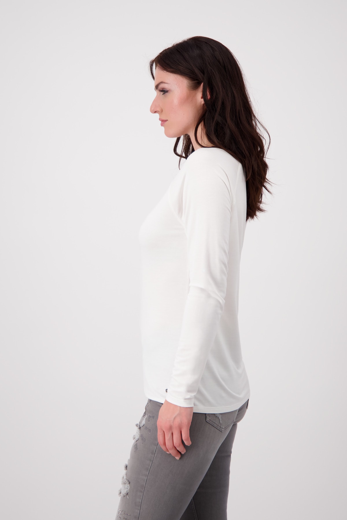 Ультрамягкая рубашка с длинными рукавами и круглым вырезом — идеальная базовая рубашка для вашего гардероба. Смесь вискозы с стрейчем гарантирует высокий уровень комфорта. Длина 44 размера 64 см.