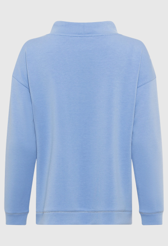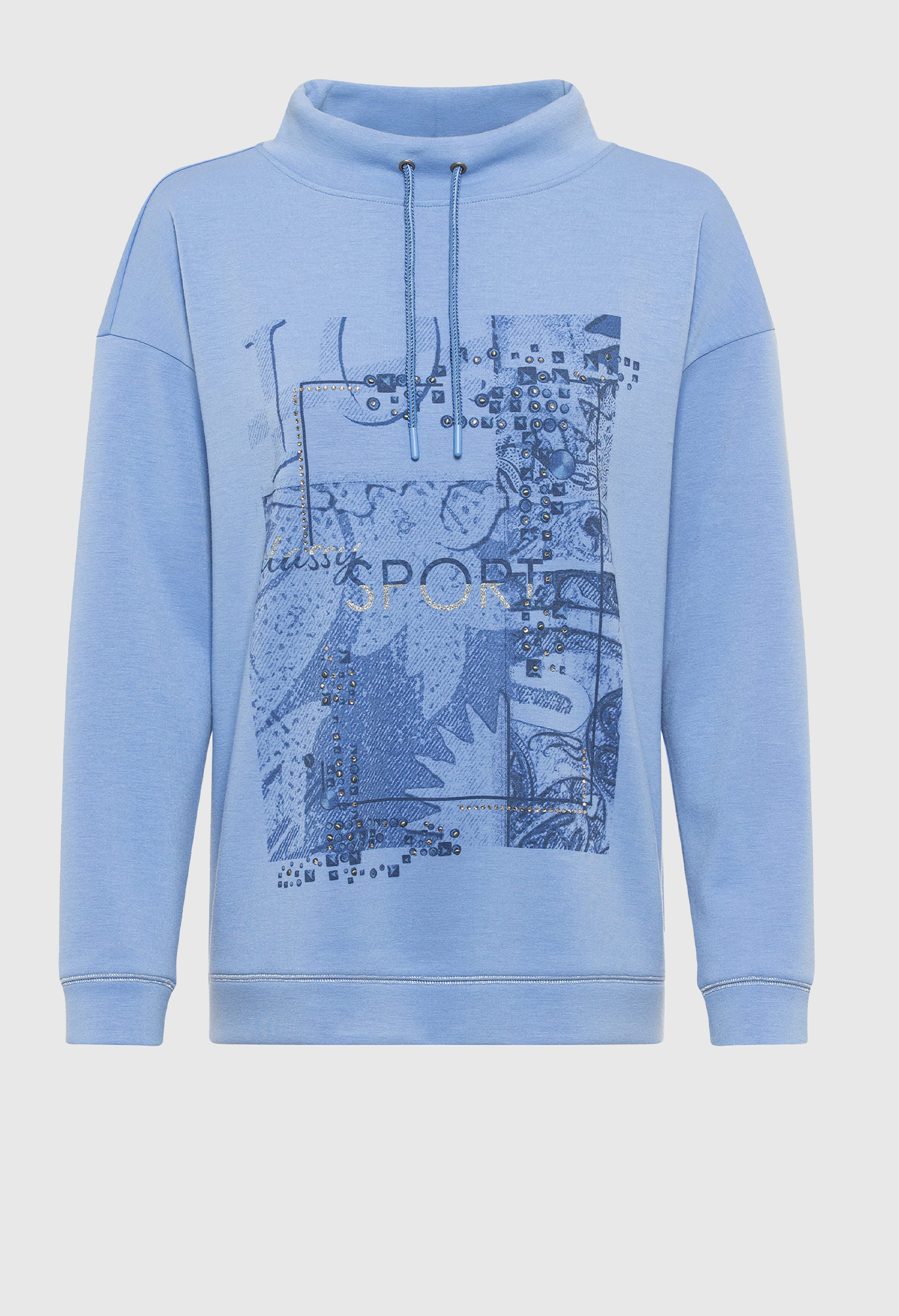 Мягкий спортивный джемпер с графическим принтом, украшенным разнообразными стразами, придающими много блеска. Модель слегка большего размера, с гладкой рукояткой и функциональной кулиской на воротнике-воронке. , которая свободно и непринужденно прилегает к телу.