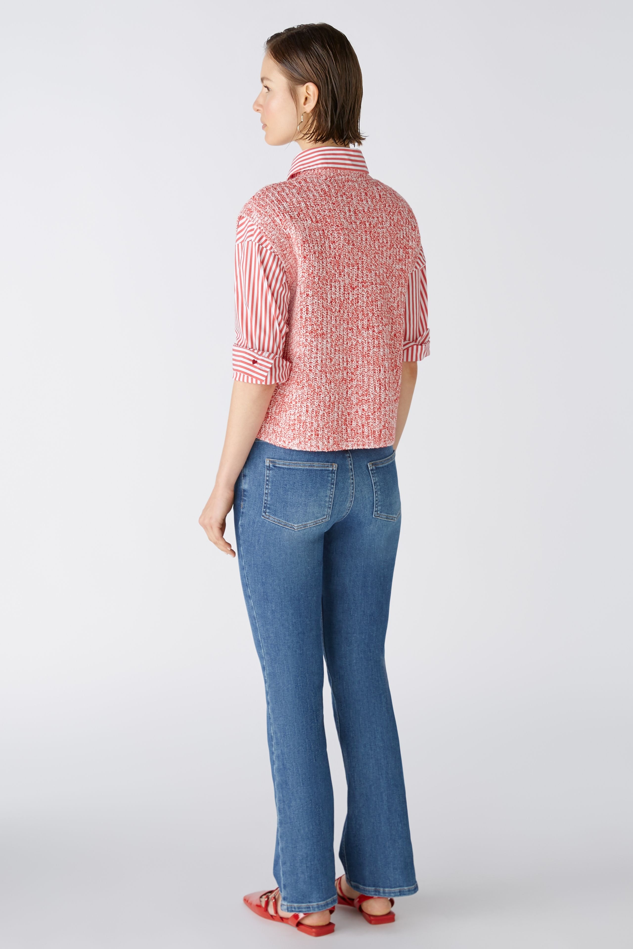 Мягкая резинка из смесового хлопка, связанная спицами из смеси пряжи Oui Iconic. Прямой крой, немного укороченный. Круглый вырез горловины с ребристой отделкой. Прямой низ, без манжет, идеально подходит для многослойной одежды. Oui Iconic смесь пряжи: разные виды пряжи, каждая разного цвета и качества, объединены по дизайну для каждого цветового варианта, в результате чего получается мягкая смесь хлопка с большой глубиной и особым эффектом. Длина для размера 42: 52 см.