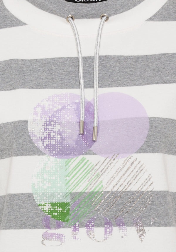 Джемпер включает функциональную завязку на вырезе, широкие полосы и абстрактный принт, украшенный прозрачными стразами, придающими легкое сияние. Изготовлен из чистого хлопка, он мягок для кожи, обеспечивает воздухопроницаемость и комфорт. В нашей современной модели Cora крой свободно и непринужденно прилегает к телу.