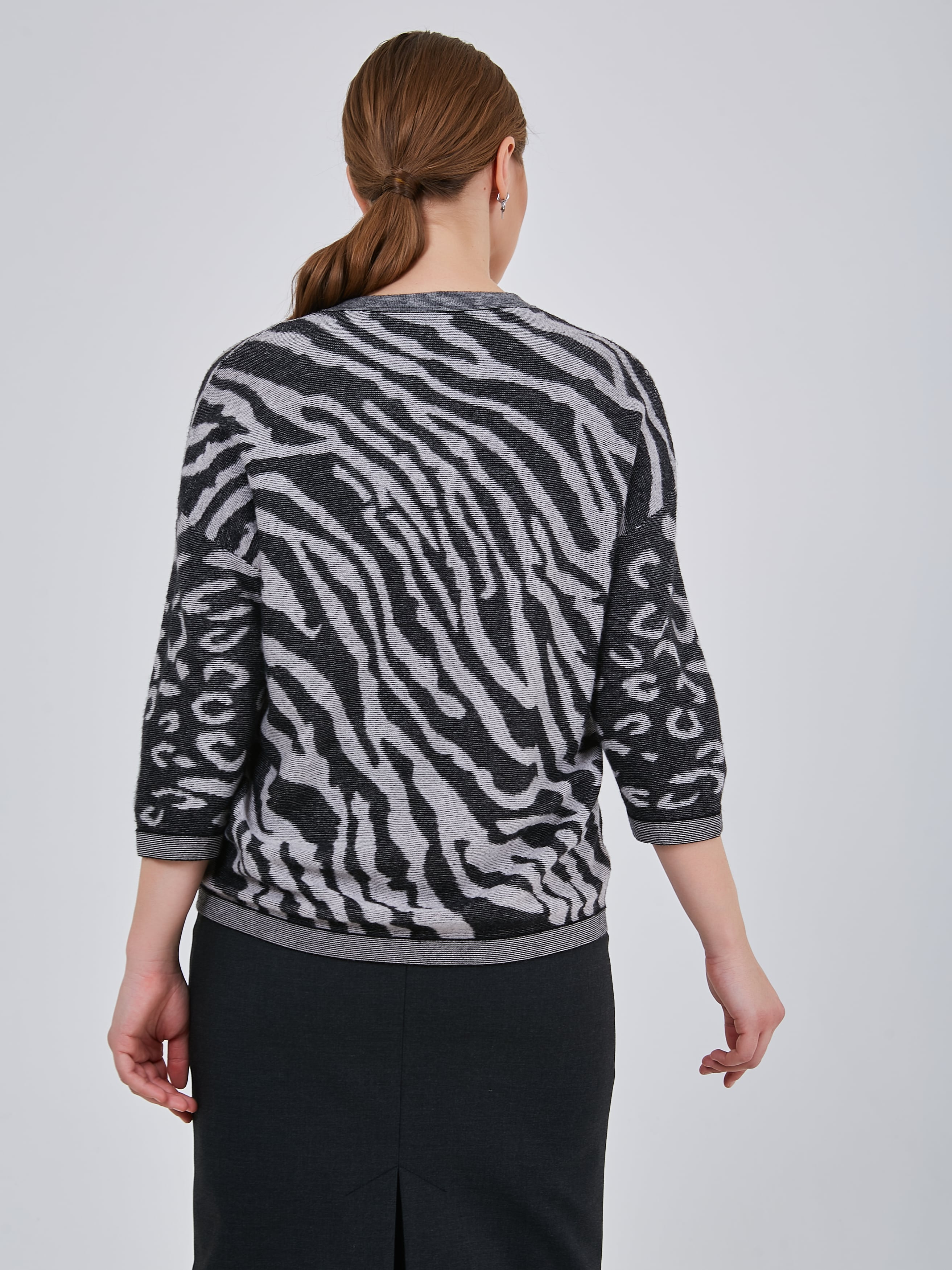 Анималистичный джемпер с длиной рукава 3/4, с небольшим декором в виде страз в цвет изделия. Коллекция Осень-Зима 2024. Капсула "Гостья из Будущего"