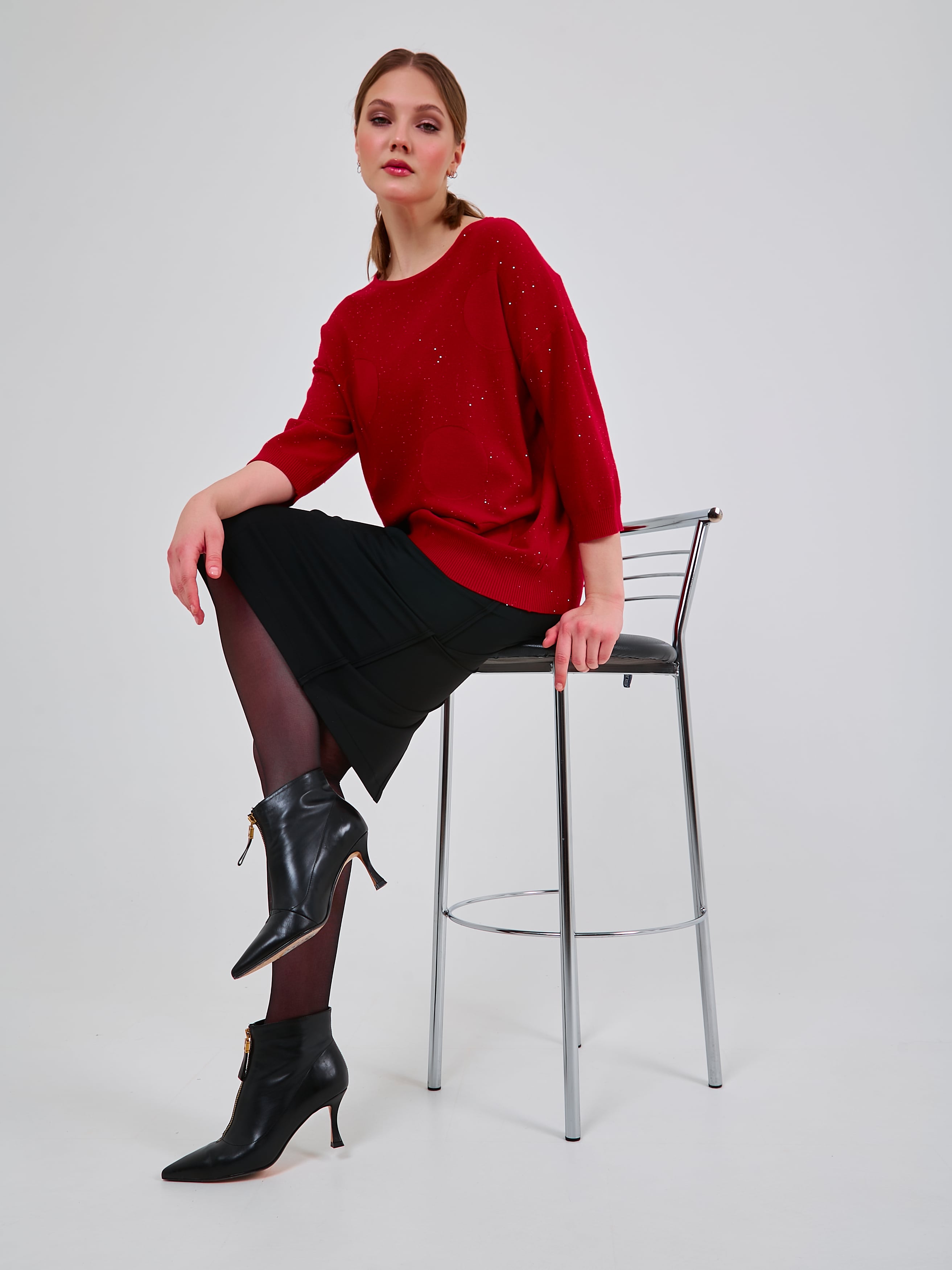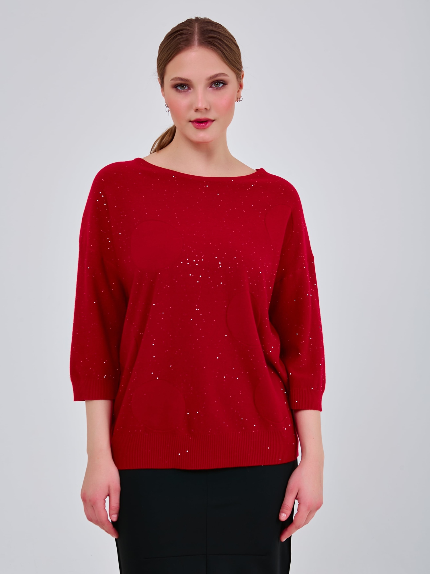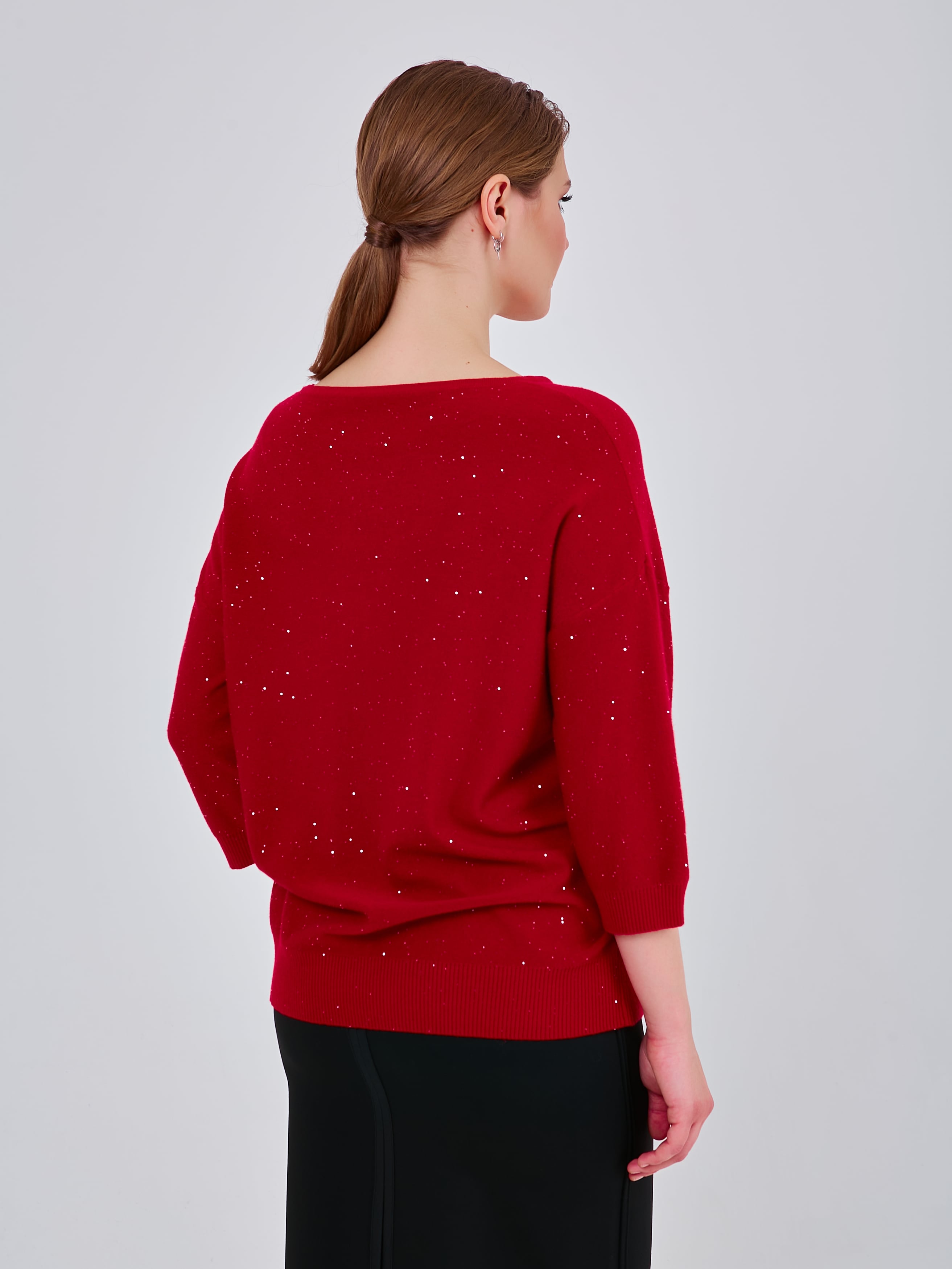 Базовый джемпер трендового оттенка красного, деликатно украшенный микропаетками.Осень-Зима'25/26. Капсула "Алые Паруса"