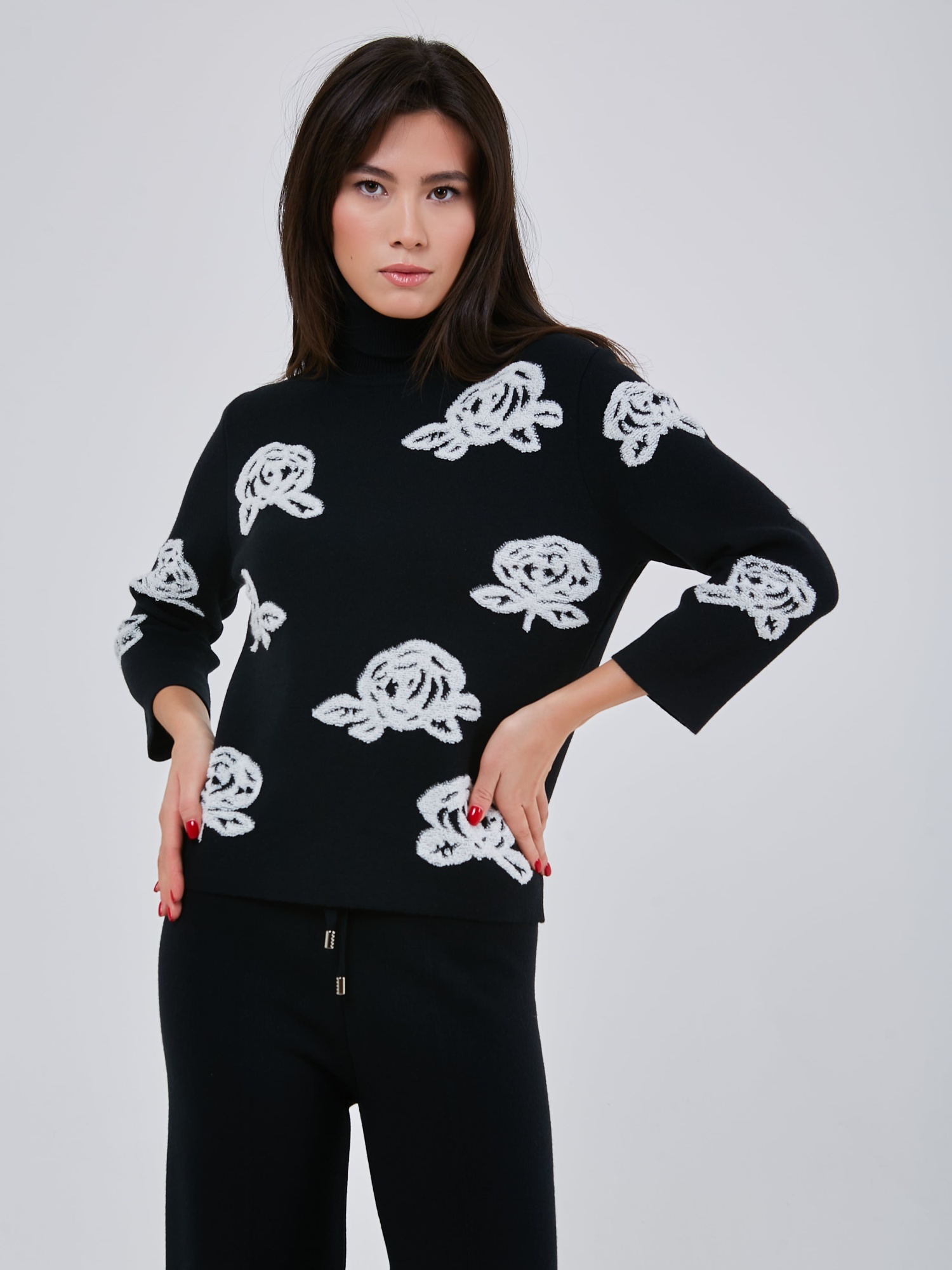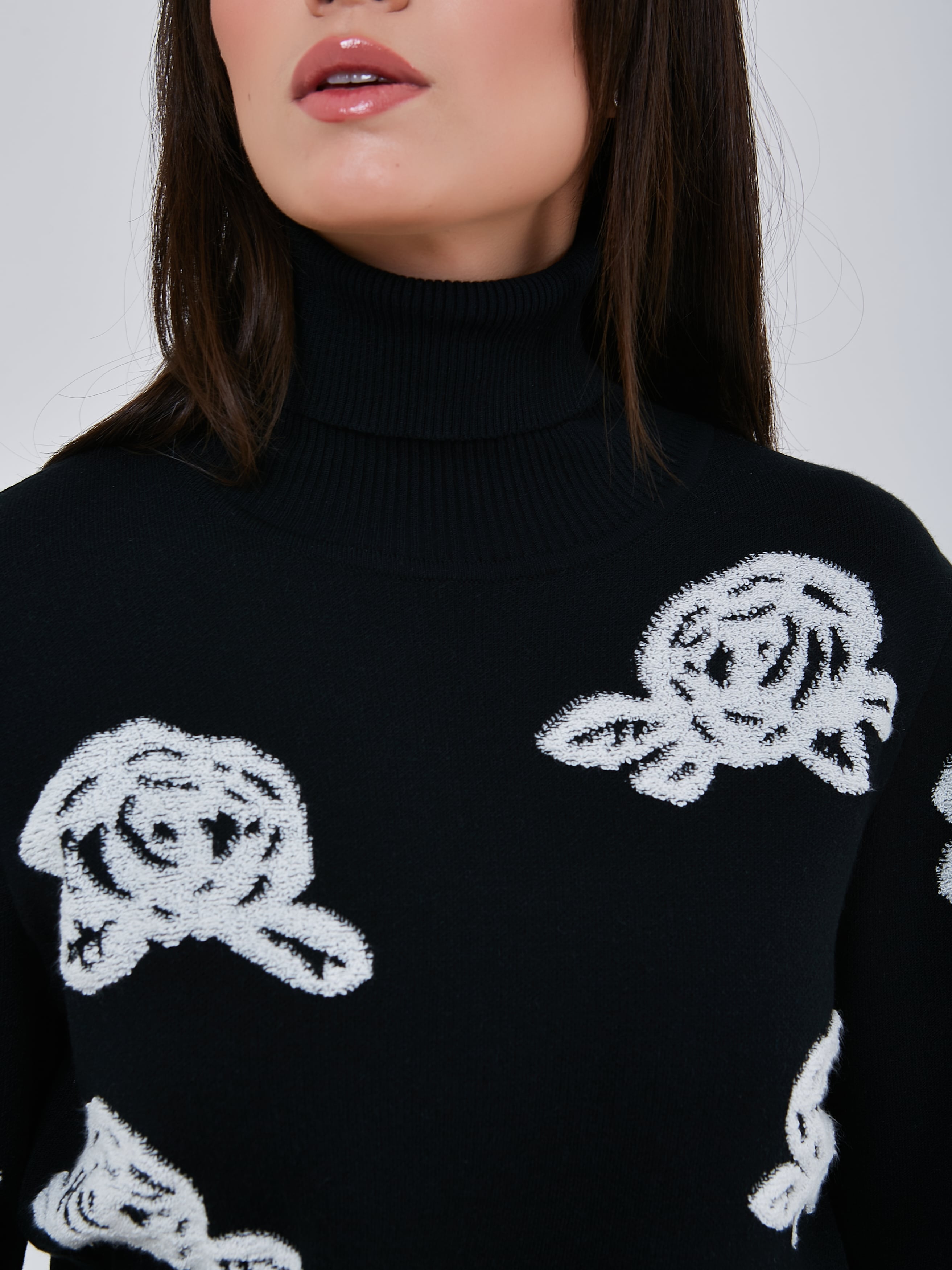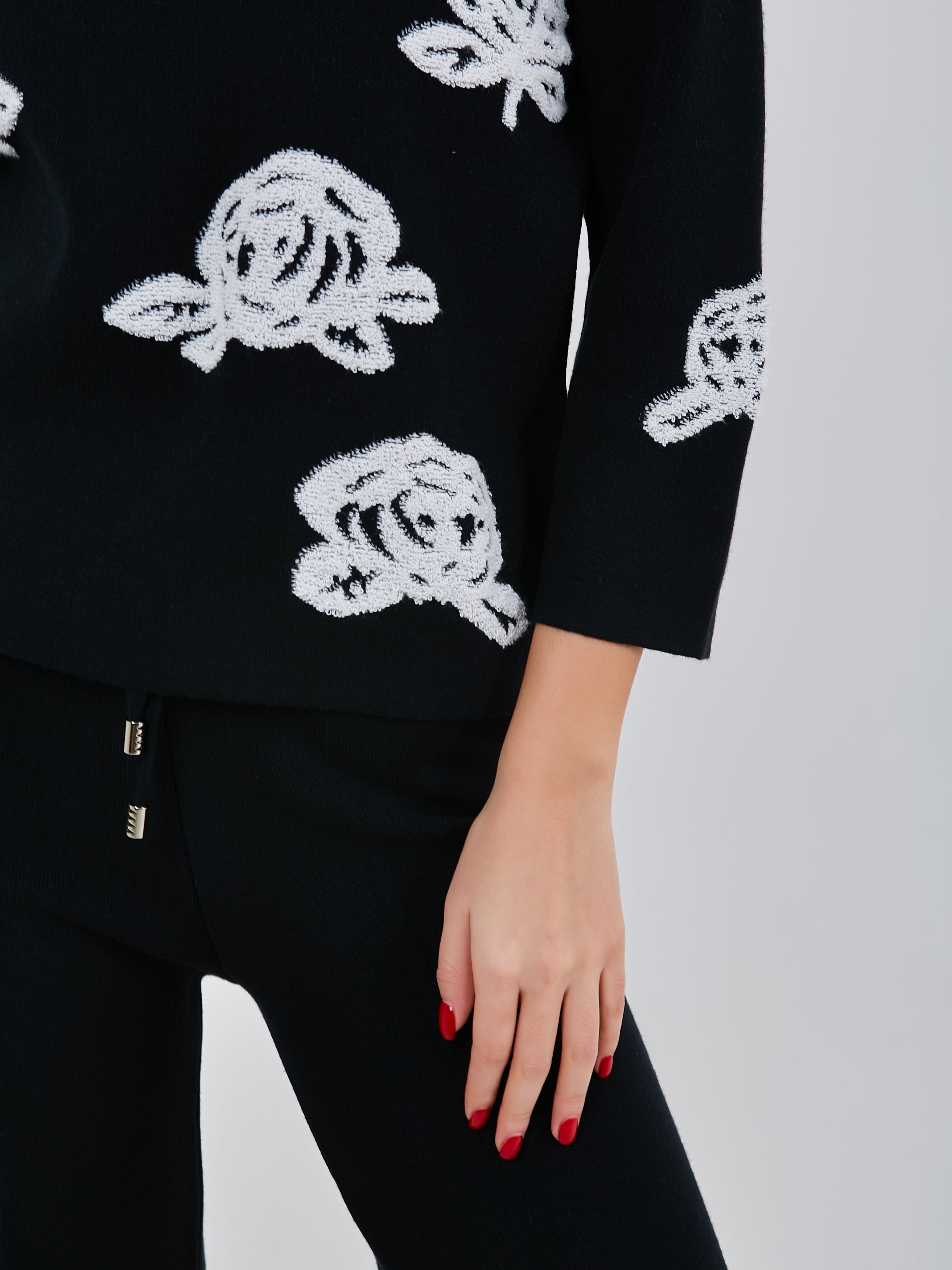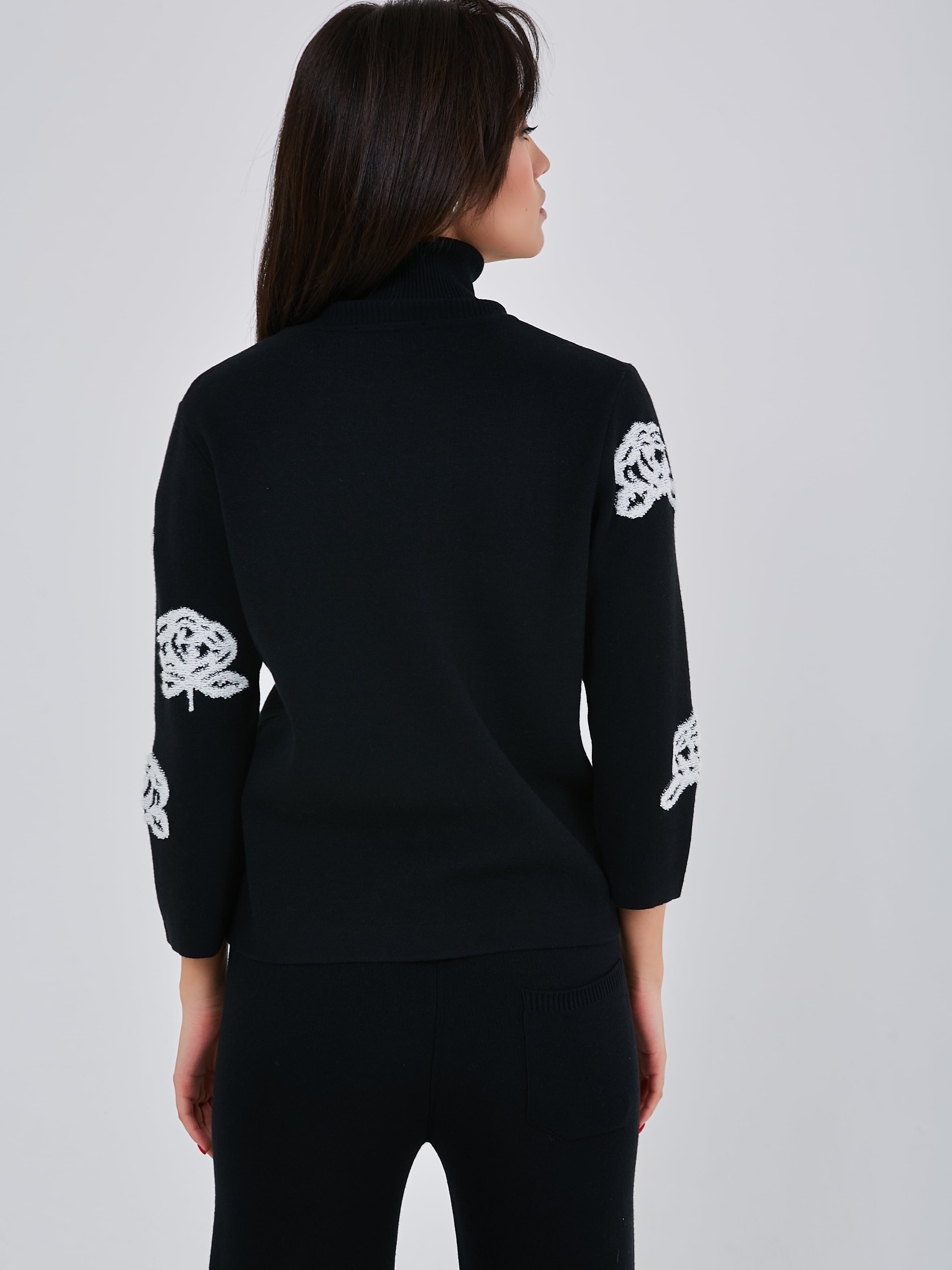 Стильный трикотажный джемпер с чёрно-белым принтом, выполненным в объёмной технике. Осень-Зима'25/26. Капсула "Малахитовая шкатулка"