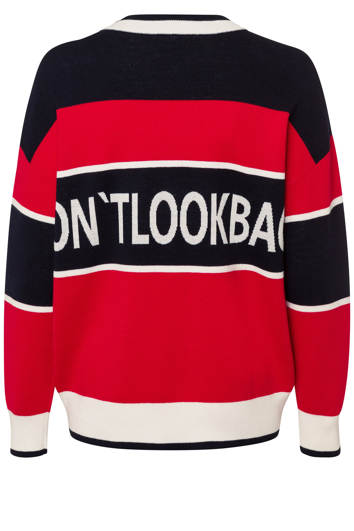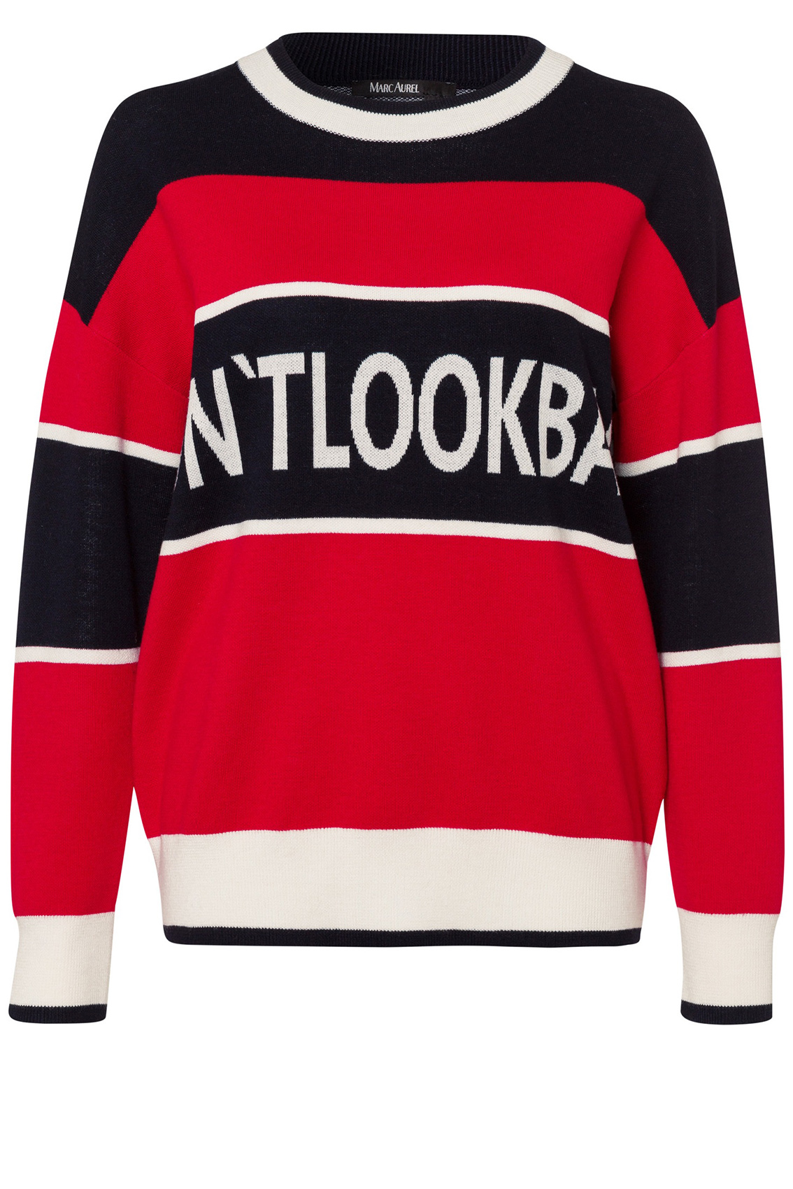 Яркий джемпер с принтом для трендового образа! Круглый вырез горловины, втачной рукав полной длины со спущенной линией плеча.